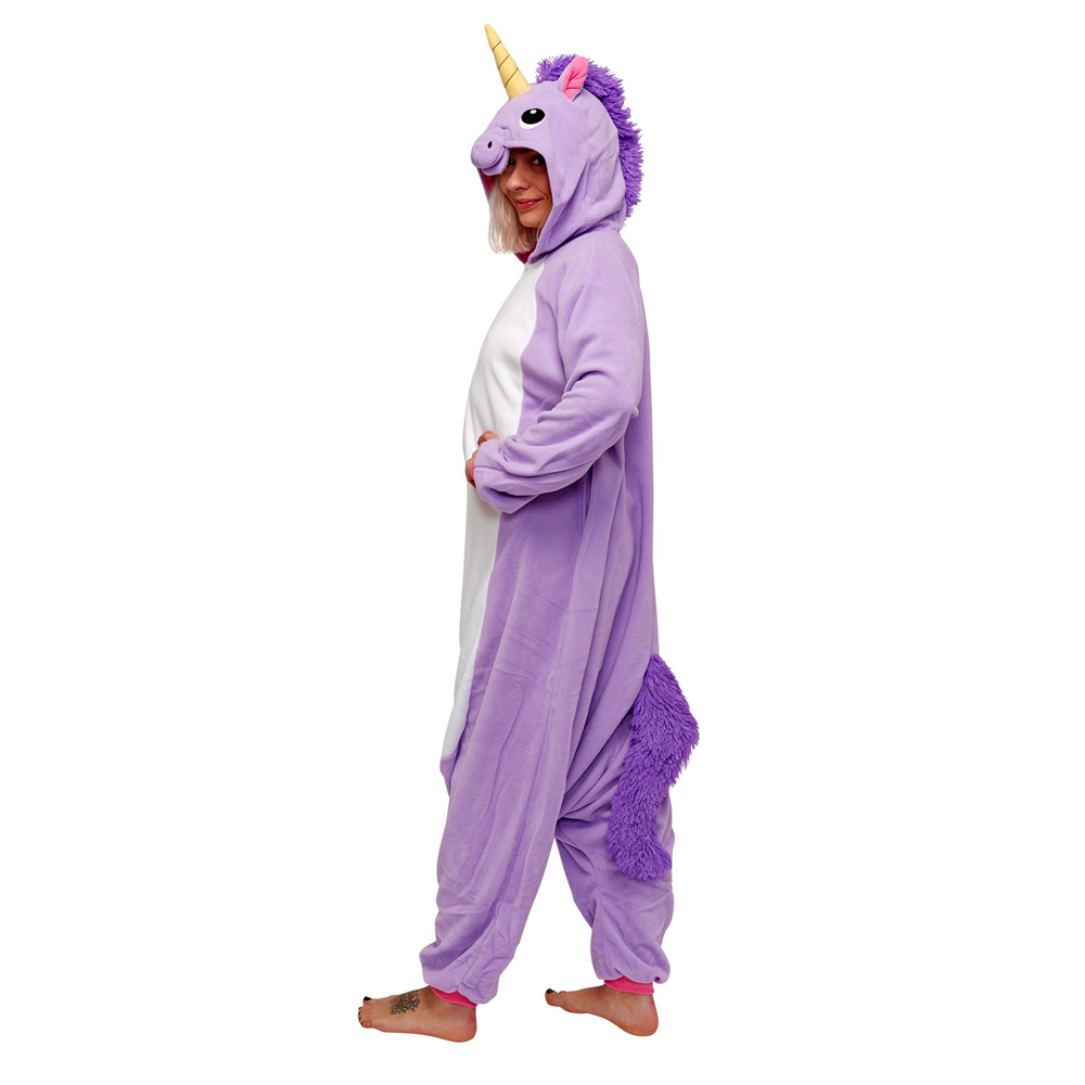 Кігурумі Єдиноріг (фіолетовий) XL — костюм, в якому будь-яка людина, що любить епатувати публіку, може зображати якогось персонажа мультфільму, кіно або комп'ютерних ігор. Кігурумі з'явилися в Японії, країні, де поєднують традиційну якість та ультрамодні ідеї. Сьогодні кігурумі носять по всьому світу, переодягаючись то в Пікачу, то в Стіча, то в Майка Вазовскі, Дракона чи Хелло Кітті. Люди, які їх носять, називаються кігурумінами. Загалом кігурумі — ціла культура, яка впевнено завойовує світ. А купити костюм кігурумі можна практично в будь-якому місті, навіть самому віддаленому і малонаселеному. Це, перш за все, зручний і клювання костюм, в якому тепло, легко рухатися і радувати оточуючих. М'який, приємний на дотик, виконаний з поліестеру, кігурумі не меніться і підходить як для хлопців, так і для дівчат. Купити кігурумі можна собі самому або подарувати друзям – кігурумі створюють для дорослих та дітей, починаючи з трьох років. Прати костюм потрібно вручну, а після прання, не вичавлюючи, ретельно просушити. При правильному залицянні костюм подарує легкість рухів та радісні емоції. Кігурумі відмінно підходять для проведення флешмобів, перформансів та концептуальних акцій, веселих вечірок та опен-ейрів. Можна купити кігурумі костюм і використовувати його у всіляких цілях. Кігурумі створюють, спираючись на популярні у всьому світі шедеври мультиплікації, блокбастери та найкрутіші комп'ютерні ігри. Будь-який персонаж гри або герой мультфільму незмінно популярний і любимо дітьми та дорослими. Тому костюм, що відсилає нас до фантастичної чи кумедної історії, приречений на те, щоб привертати увагу, піднімати настрій та заряджати позитивною енергією всіх довкола!