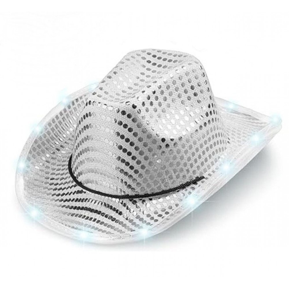 Справжній вечір не починається без блиску. А коли цей блиск — на тобі, і він світиться, тоді справа за малим. Ковбойський капелюх “Зоряний пил” — це не просто капелюх, це виклик сірим нарядам. Сріблястий, усипаний паєтками, він переливається як диско-шар, а вбудовані вогники по краю роблять свою справу — ніхто мимо не пройде.