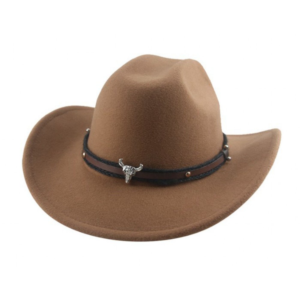 Прикрашена декоративною стрічкою з імітацією шкіряного ремінця і металевою вставкою у вигляді голови бика — символу сили і свободи. Широкі поля захищають від сонця, а висока тулья робить образ виразним. Універсальний розмір (56-58 см) підходить більшості. Капелюх легкий і зручний, важить близько 300 г, не стискає голову і комфортно сидить. Чудово поєднується з денімом, жилетами, пальто і куртками.