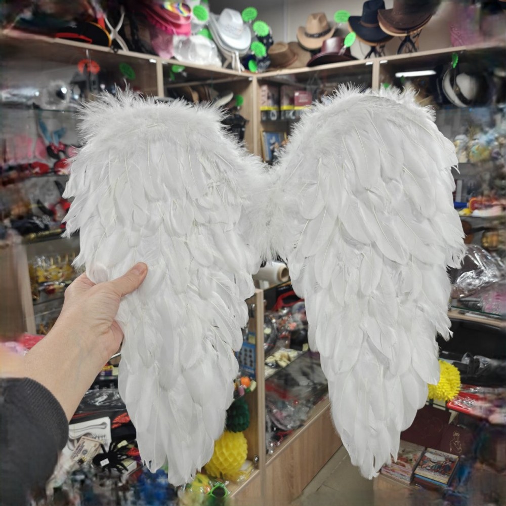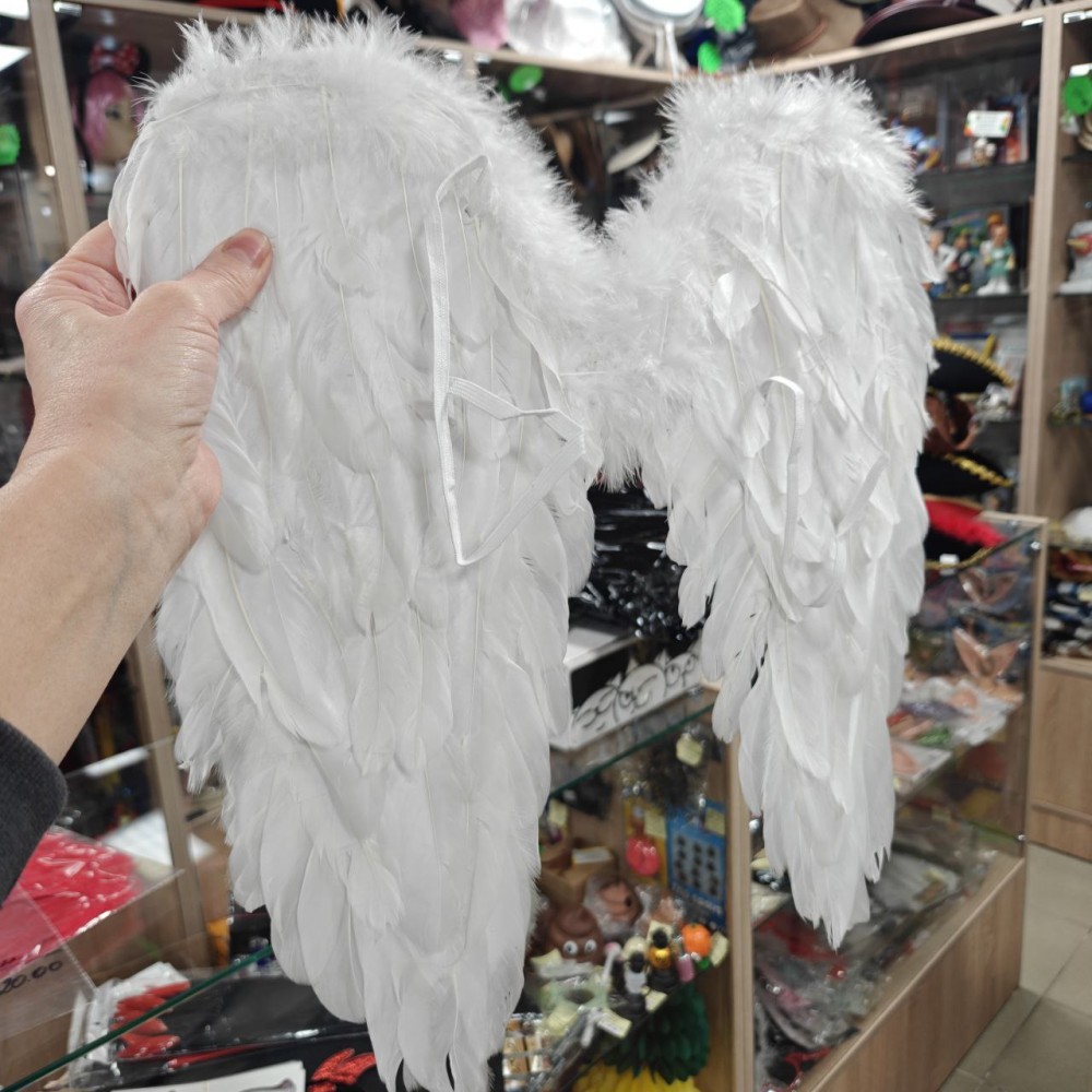 Крила Амура середні 45х45см (білі) ± 3см. Розмір виробу може відрізнятись від вказаного на ±3см. Карнавальні білі крила Амура виготовлені з натурального пір'я на дротяному каркасі, вкритому картоном. Колір пера білий, допускається легка жовтизна на матеріалі (природний відтінок натурального пера), оскільки виріб виготовлений з натурального білого пера. Надійно та практично крила одягаються на плечі за допомогою гумок. Інтернет магазин Подарок-тут! пропонує Вам купити карнавальні накладні Крила Амура середні 45х45см (білі). Крила ангела чудово підійдуть як для дитячого ранку, так і для маскарадної вистави чи концерту, фотосесії чи весілля.
