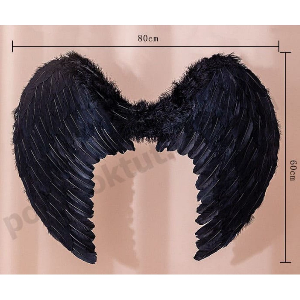 Пропонуємо вашій увазі розкішні крила ангела в глибокому чорному кольорі, виконані в класичній формі. Розмір крил 80х60 сантиметрів створює по-справжньому вражаючий ефект. Кожне крило має благородний вигин, характерний для природної форми, з загостреними кінчиками, що надають образу особливої елегантності.