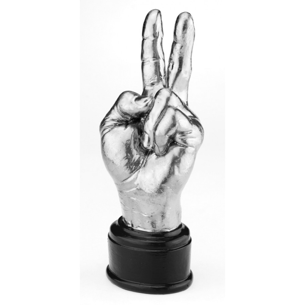 Оригінальна статуетка у вигляді жесту руки "V", що означає "Перемога!" - це унікальний і привабливий варіант подарунка. Ця повнорозмірна статуетка вирізняється незвичайним та яскравим дизайном. Вона має спеціальне місце на підставці, де ви можете додати персоналізований вітальний напис. Оптимальний розмір напису - 50*33 мм (ширина/висота). Ця статуетка стане чудовим і неординарним подарунком, а також стильним доповненням до будь-якого інтер'єру.