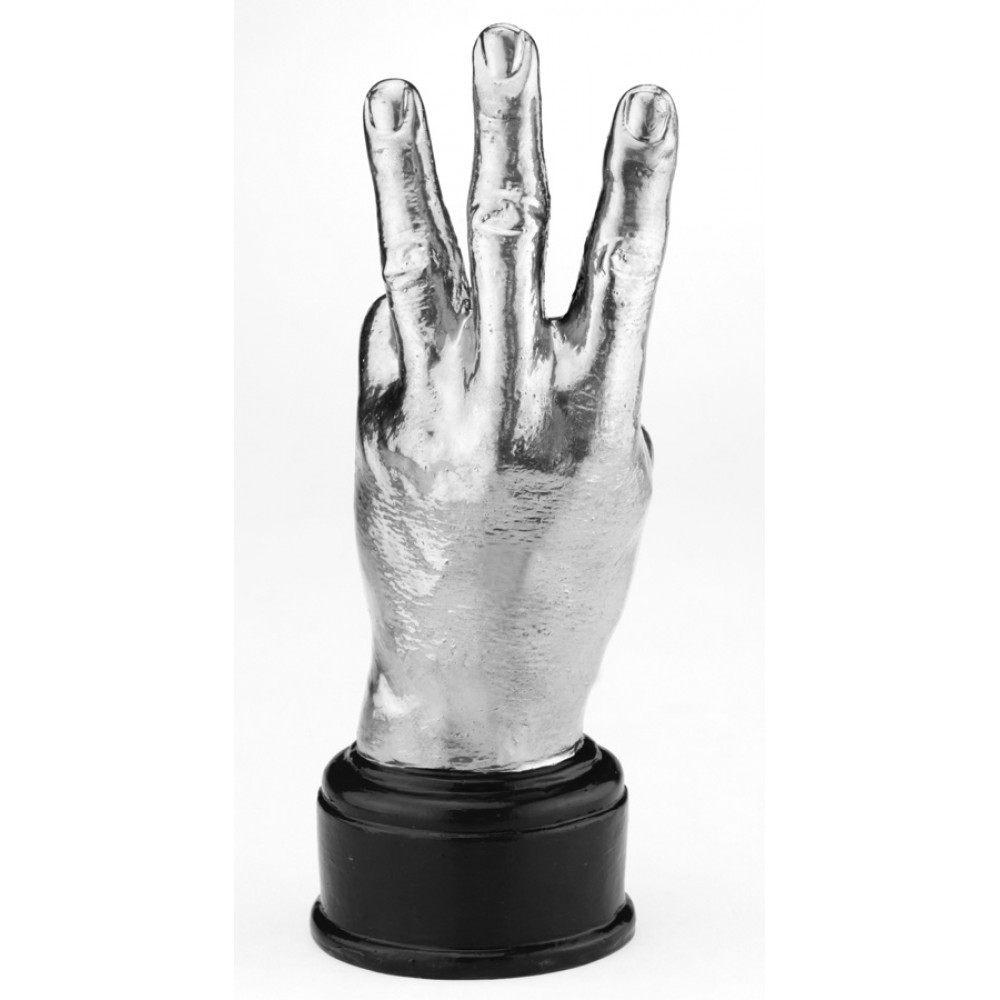 Оригінальний кубок у вигляді жесту руки, що символізує український герб, є унікальним і незабутнім подарунком. Він виконаний у натуральну величину і привертає увагу своїм незвичайним і яскравим дизайном. На п'єдесталі кубка є спеціальне місце для розміщення вітального напису. Оптимальний розмір для напису становить 50*33 мм (ширина/висота). Цей кубок стане чудовим незвичайним подарунком і стильною деталлю інтер'єру.