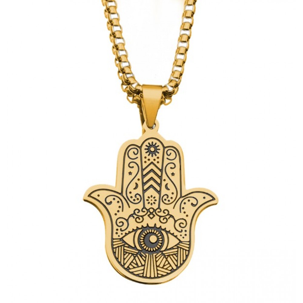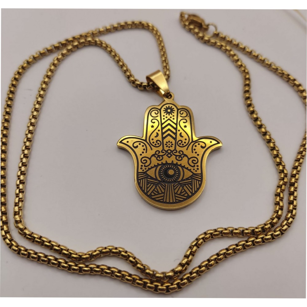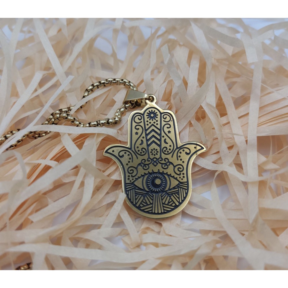 Теги: Кулон Хамса з нержавної сталі (золото) | Рука Фатіми з ланцюжком