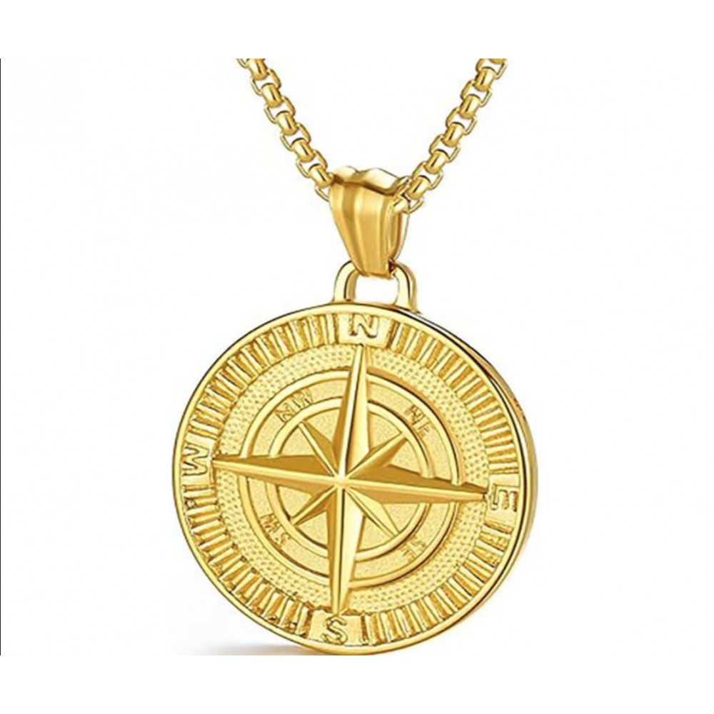 A кулон із зображенням рози вітрів — символу руху, вибору та впевненості у своєму шляху. Золотисте покриття надає прикрасі благородного сяйва і робить його виразним акцентом в образі. Гармонійне поєднання форми та сенсу перетворює цей аксесуар на стильний знак характеру і внутрішнього напрямку.