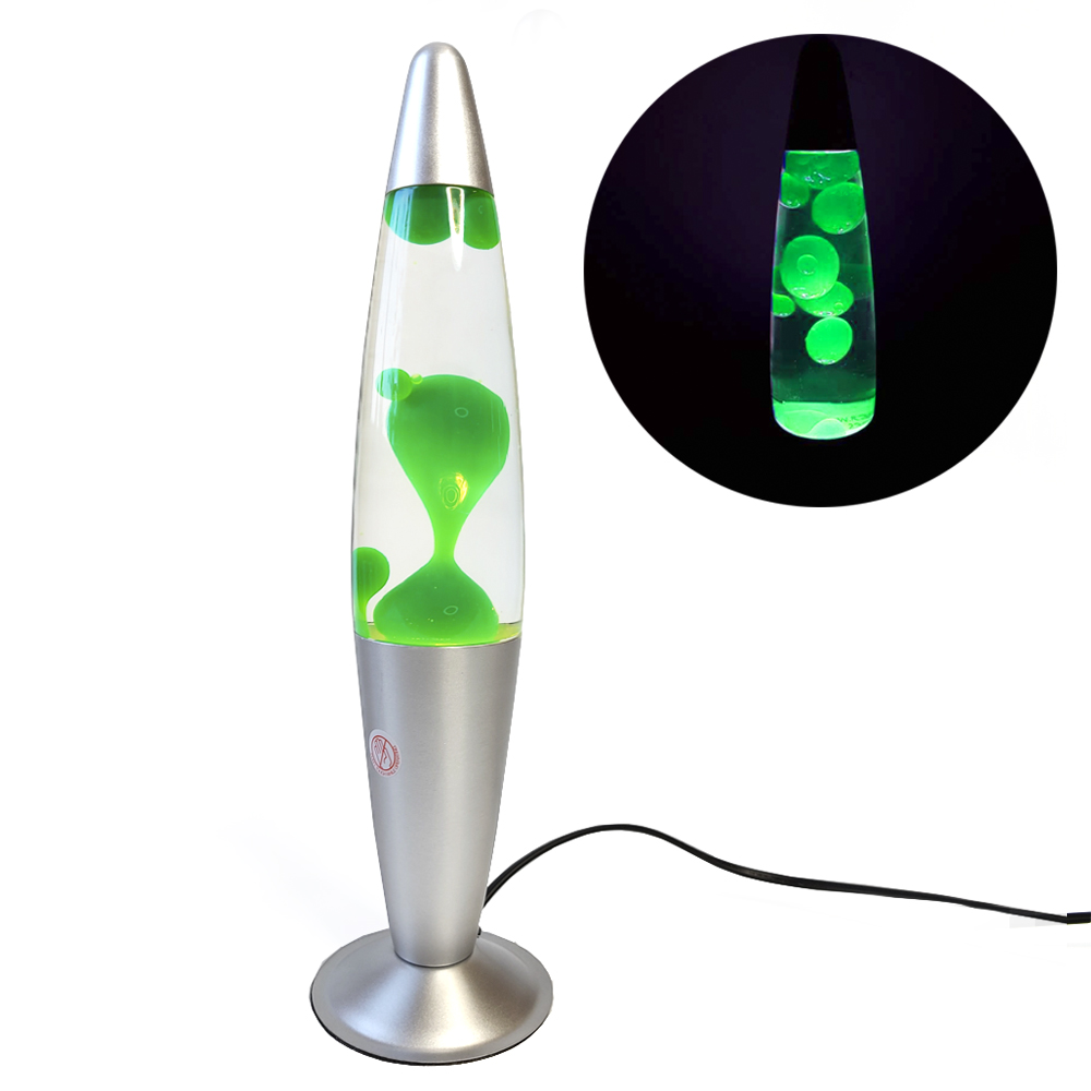 Творчим людям необхідне натхнення. І кожен знаходить його у різних речах. Якщо Ви шукаєте те, що Вас надихатиме і даватиме Вам ідеї для творчості. Інтернет-магазин Подарок-ТУТ! представляє дуже незвичайний аксесуар для Вашої кімнати або кабінету Лава лампа з парафіном (34см) зелена. Лава лампа з парафіном зелена – це дуже незвичайний світильник нічник – прекрасне джерело для Вашого натхнення. Лава лампа виконана у вигляді колби, в якій знаходиться прозора олія та кольоровий парафін зеленого кольору. Цю колбу треба помістити на підставку, в якій знаходиться лампочка, яка підсвічує і починає нагрівати парафін. Може хтось не знає, але в холодному стані парафін важчий за олію і тим самим він лежить на дні колби, а при нагріванні стає легше і починає плавати по колбі. Лампа представлена в різних кольорах. Така лампа зачаровує і навіть гіпнотизує, змушуючи дивитись на чудовий ефект. Так само якщо після довгого робочого дня Ви хочете розслабитися і просто посидіти в кріслі та відпочити, то Лава лампа зробить Ваш вечір набагато приємнішим, той ефект, який зробить лампа на Вас, дозволить Вам насолодитися відпочинком на повну. Світильник працює від розетки 220V. Для більшого терміну служби виробу час роботи розігрітої лампи не повинен перевищувати 8-10 годин. При нагріванні знизу 25 або 30-ватною лампочкою парафін починає розширюватися, нагрівшись він стає менш щільним ніж рідина в якій він знаходиться і це змушує його підніматися. Для розігріву парафіну знадобиться близько години, постійно тримати увімкнену лампу не можна. Рекомендований час роботи лампи не більше 3-4 годин на максимальній яскравості та нагріванні, після досягнення активного руху - інтенсивність нагрівання/яскравості слід зменшити, щоб забезпечити підтримку від пімальної температури. У комплектацію входить: скляна колба з парафіном і маслом (рідина безбарвна, а парафін кольоровий), пластикова підставка з шнуром живлення з реле (для регуляції інтенсивності нагрівання), що підключається в розетку і кришка, маленька лампа розжарювання.