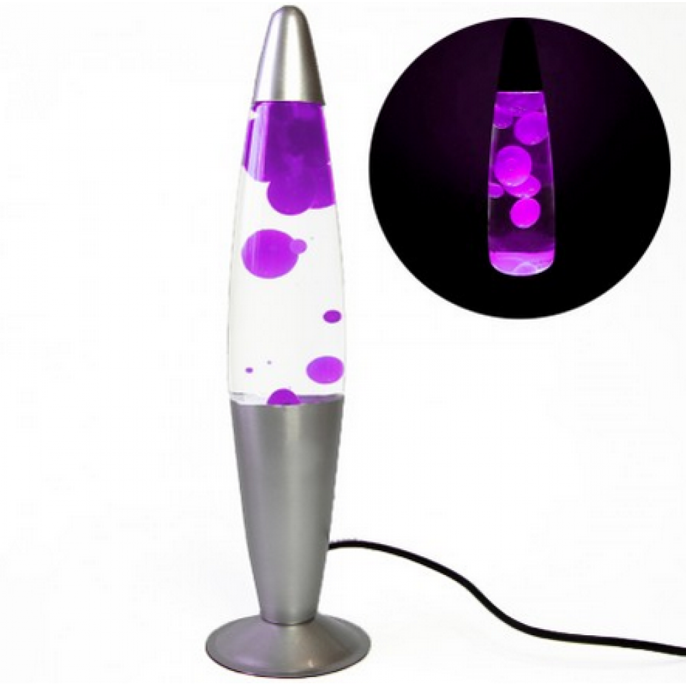Творчим людям необхідне натхнення. І кожен знаходить його у різних речах. Якщо Ви шукаєте те, що Вас надихатиме і даватиме Вам ідеї для творчості. Інтернет-магазин Подарок-ТУТ! представляє Вам дуже незвичайний аксесуар для Вашої кімнати або кабінету Лава лампа з бузковим парафіном (40см). Лава лампа з бузковим парафіном - це дуже незвичайний світильник нічник, прекрасне джерело для Вашого натхнення. Лава лампа виконана у вигляді колби, в якій знаходиться прозора олія та кольоровий парафін бузкового кольору. Цю колбу треба помістити на підставку, в якій знаходиться лампочка, яка підсвічує і починає нагрівати парафін. Може хтось не знає, але в холодному стані парафін важчий за олію і тим самим він лежить на дні колби, а при нагріванні стає легше і починає плавати по колбі. Лампа представлена в різних кольорах. Така лампа зачаровує і навіть гіпнотизує, змушуючи дивитись на чудовий ефект. Так само якщо після довгого робочого дня Ви хочете розслабитися і просто посидіти в кріслі і відпочити, то Лава лампа зробить Ваш вечір набагато приємнішим, той ефект, який зробить лампа на Вас, дозволить Вам насолодитися відпочинком на повну. Світильник працює від розетки 220V. Для більшого терміну служби виробу час роботи розігрітої лампи не повинен перевищувати 8-10 годин. При нагріванні знизу 25 або 30-ватною лампочкою парафін починає розширюватися, нагрівшись він стає менш щільним ніж рідина в якій він знаходиться і це змушує його підніматися. Для розігріву парафіну знадобиться близько години, постійно тримати увімкнену лампу не можна. Рекомендований час роботи лампи не більше 3-4 годин на максимальній яскравості та нагріванні, після досягнення активного руху - інтенсивність нагрівання/яскравості слід зменшити, щоб забезпечити підтримку від мінімальної температури. У комплектацію входить: скляна колба з парафіном і маслом (рідина безбарвна, а парафін кольоровий), пластикова підставка з шнуром живлення з реле (для регуляції інтенсивності нагрівання), що підключається в розетку і кришка, маленька лампа розжарювання.