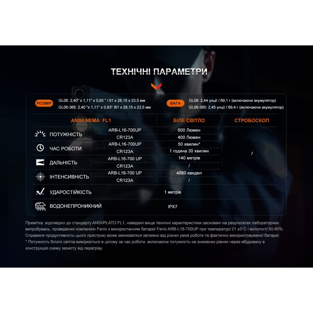 Опис ліхтаря на пістолет Fenix GL06: