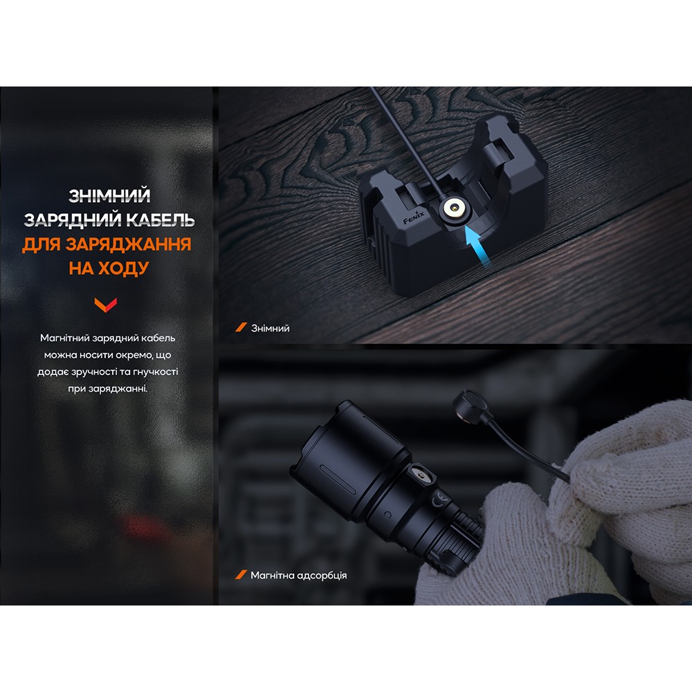 * Наведені показники часу роботи у 6 режимах були отримані в ході лабораторного тестування з використанням одного Li-ion акумулятора Fenix ARB-L21-5000 V2.0 при температурі повітря 21±3°C і вологості в межах 50%-80%. Тривалість роботи ліхтаря може відрізнятися залежно від умов навколишнього середовища та типу використовуваного елемента живлення.