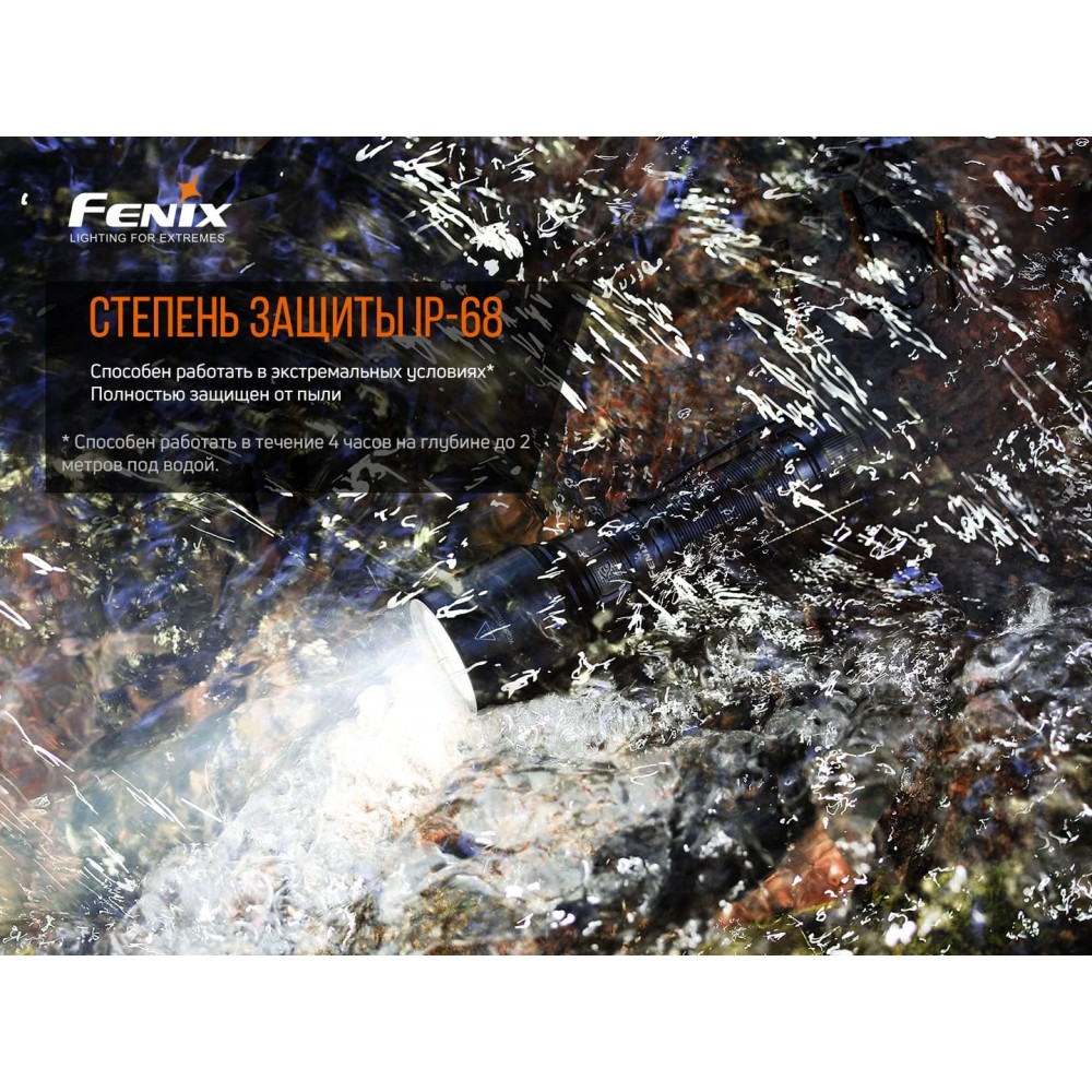 * Наведені показники світіння моделі отримані в процесі здійснення лабораторних випробувань. Застосовували один літій-іонний акумулятор Fenix ARB-L21-5000, температура повітря становила 21 +-3 градуси Цельсія, а вологість була приблизно 50% -80%. Параметри роботи ліхтаря можуть варіювати в залежності від того, який елемент живлення використовується, а також від умов зовнішнього середовища.