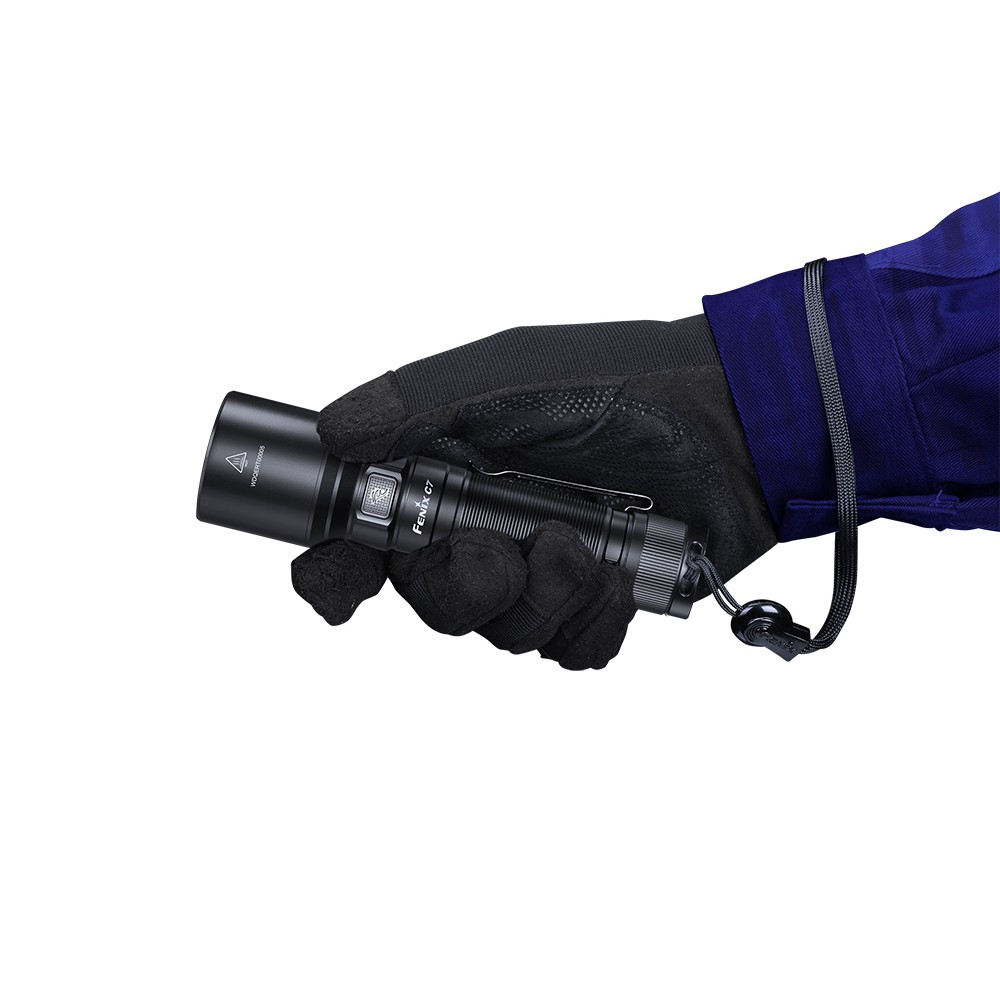 Ліхтар Fenix C7-високопродуктивна акумуляторна модель для промислового обслуговування та експлуатації. У нього передбачена зарядка USB Type-C з включеною літій-іонною батареєю ємністю 5000 мАг. Дає максимальну яскравість світла в 3000 люменів в турбо-режимі при відстані променя до 470 метрів.