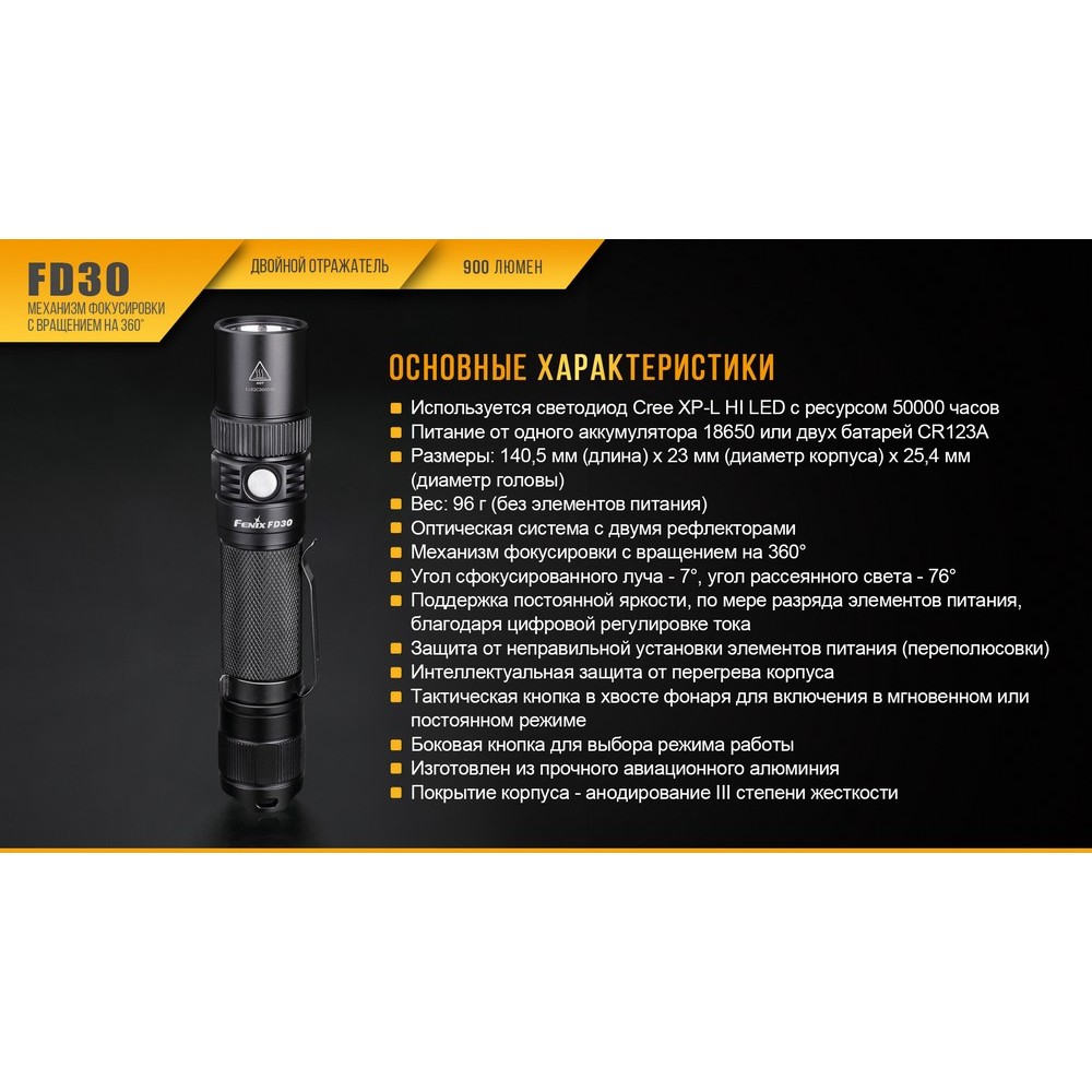 Гарантия: Все фонари Fenix FD30 поступают в продажу с гарантией 5 лет.
