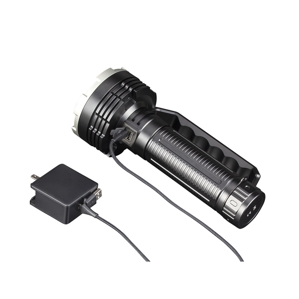 Корпус ліхтаря зроблений з міцного алюмінієвого сплаву а6061-Т6. Є преміальне Жорстке анодування третього типу, стійке до абразивів. Модель добре захищена від вологи і пилу, стандарт IP68. Легко переносить падіння з висоти одного метра, не пошкоджуючись. Габарити моделі складають 259*108*54 міліметра. Важить 1636 грам, включаючи вагу батареї.