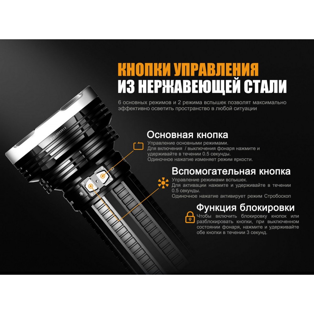 Всі дані щодо часу роботи ліхтаря вказані з урахуванням використання акумуляторів ARB-L18 бренду Fenix, ємність кожного з яких становить 3500 мАч.