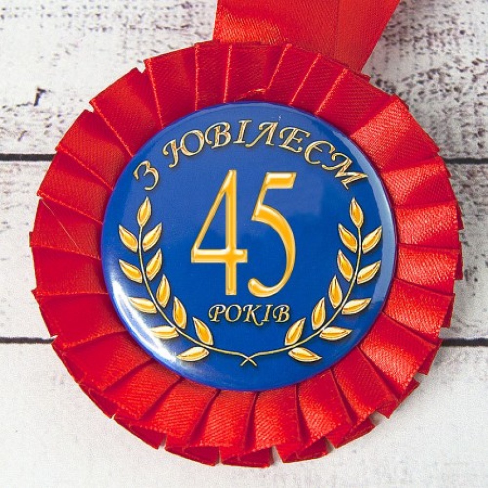 Колір красный с синим Матеріал пластмасса, атласная лента Розмір виробу Изделие: диам. розетки 8, 5см, диам. жетона 5, 8см, длина ленты 35см, упаковка: 9х9х2см Країна виробник Украина Усі характеристики