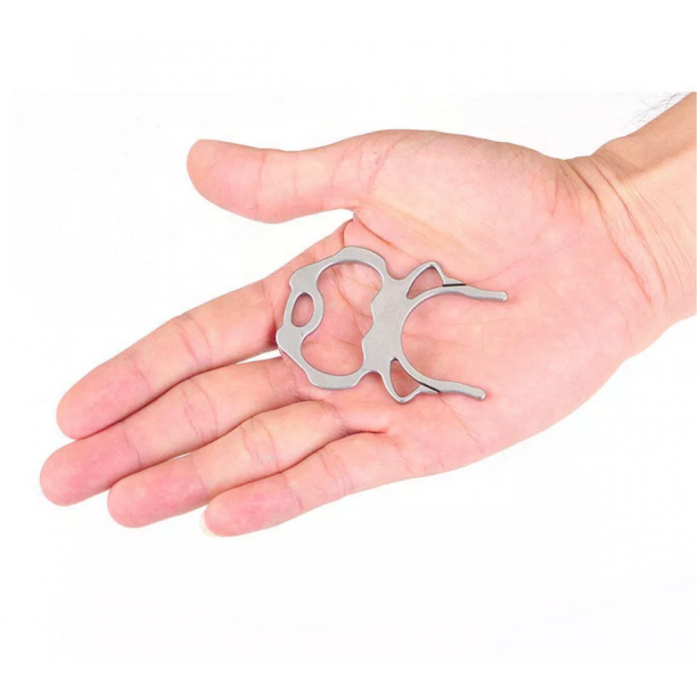 Багатофункціональний інструмент виконаний з нержавіючої сталі марки 2Cr13. Це міцний і надійний матеріал, який забезпечує моделі довгий термін експлуатації. Виріб компактне і легке, вага 15 грам. Довжина мультитула 60 міліметрів, ширина 42 мм, товщина – 2,5 міліметра. Призначений для відкривання пляшок, також може бути підставкою для тарі. Розміри примірника дозволяють носити його в кишені або сумці, можна використовувати як брелок. Цікавий дизайн моделі сподобається любителям незвичайних стильних аксесуарів. Приємний нейтральний сірий колір прекрасно підійде до будь одязі або сумці.