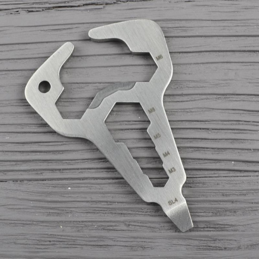 У мультитулі об'єднання єднані викрутки, гайкові ключі, відкривачка для пляшок. Всього три функції, яких вистачить для вирішення найбільш часто виникаючих завдань. Зручно для використання на роботі, на прогулянці, під час вилазки, вдома також може стати в нагоді. Можна причепити мультитул до одягу або рюкзака, для цього передбачений карабін. Колір мультитула – сірий, довжина 7,4 сантиметри.