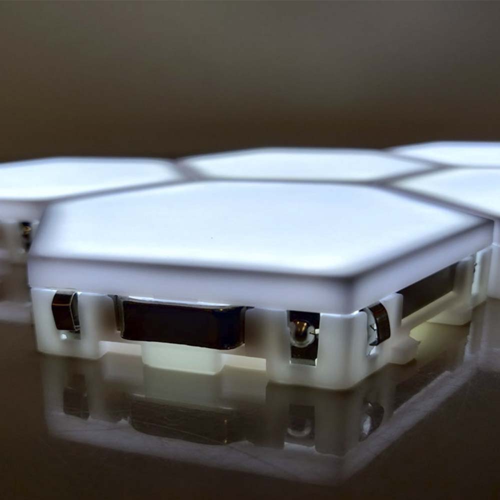 Унікальний геометричний мінімалістичний дизайн, який прикрасити вашу оселю. Може бути розміщений у вітальні, спальні, кабінеті, ресторані, готелі тощо. Шестикутна форма та магнітне з'єднання дозволяє з'єднувати модулі у різні конструкції. Кожна модульна лампа – сенсорна, вмикається та вимикається завдяки безпосередньому дотику до поверхні стільника рукою та незалежно від інших стільникових модулів (кожний модуль в ланцюзі вмикається та вимикається окремо). Таким чином, можна регулювати яскравість освітлення у приміщенні. Дана модель LED світильника з сенсором надає різнокольорове свічення. Комбінуючи кілька сенсорних світильників, можна досягти бажаного розміру світильника в залежності від його розташування. Закріпити декоративну сенсорну лампу на стіні можна за допомогою шурупів, або використовуючи клейку стрічку, яка є в наборі. Також доступний варіант з однотонним білим світінням. В комплект входить 6 сот білого кольору і кожен різного відтінку світіння: помаранчевий, рожевий, червоний, синій, зелений, фіолетовий. З блоком живлення від 220Вт. Розмір стільника 10 Х 11,5 Х 2см. Великий асортимент незвичайних подарунків представлений у інтернет-магазині Подарок-ТУТ!. Ви отримуєте не лише якісний товар, а й 100% позитивних вражень від придбання. Серед нашого широкого асортименту товарів, Ви знайдете безліч незвичайних та оригінальних подарунків для різноманітних заходів.