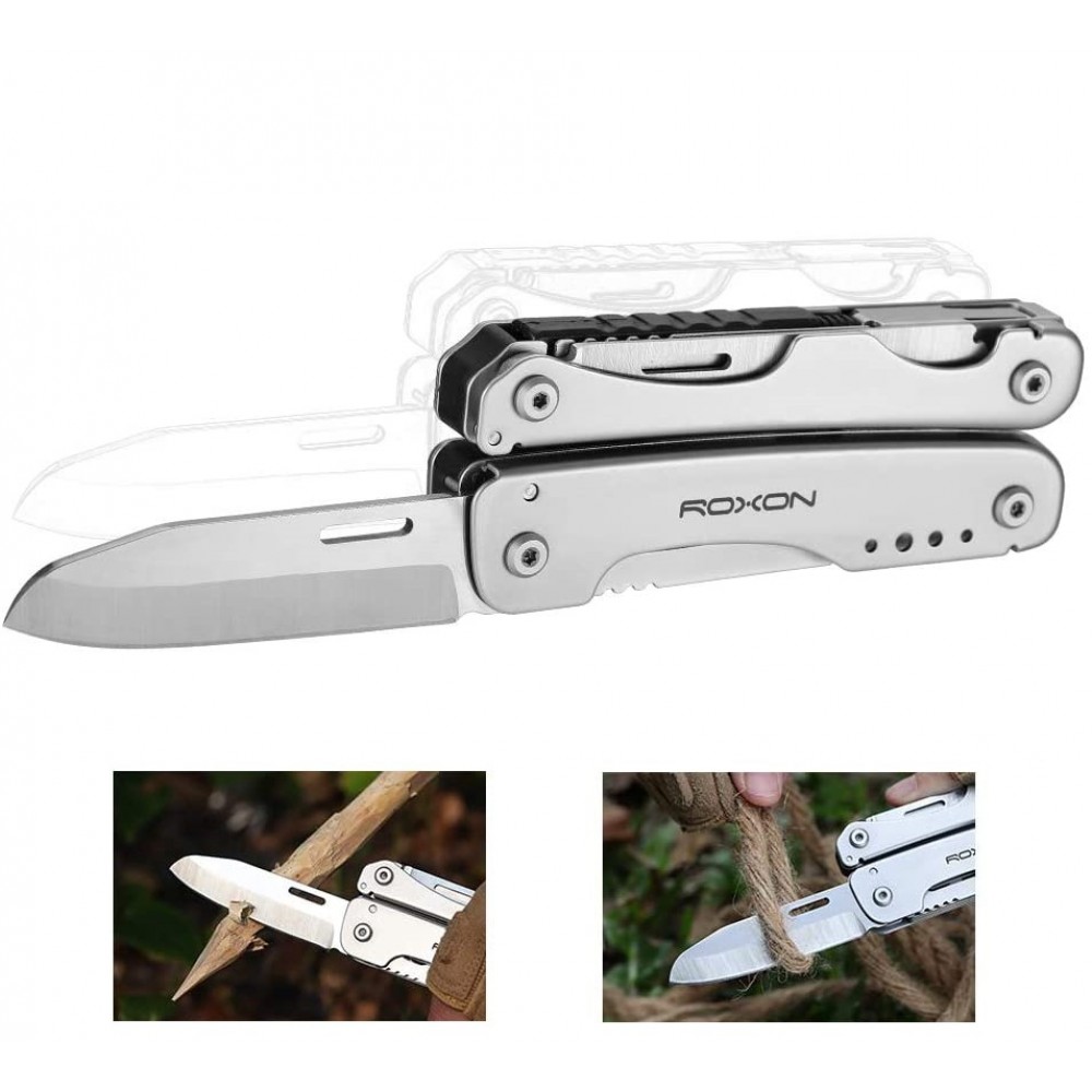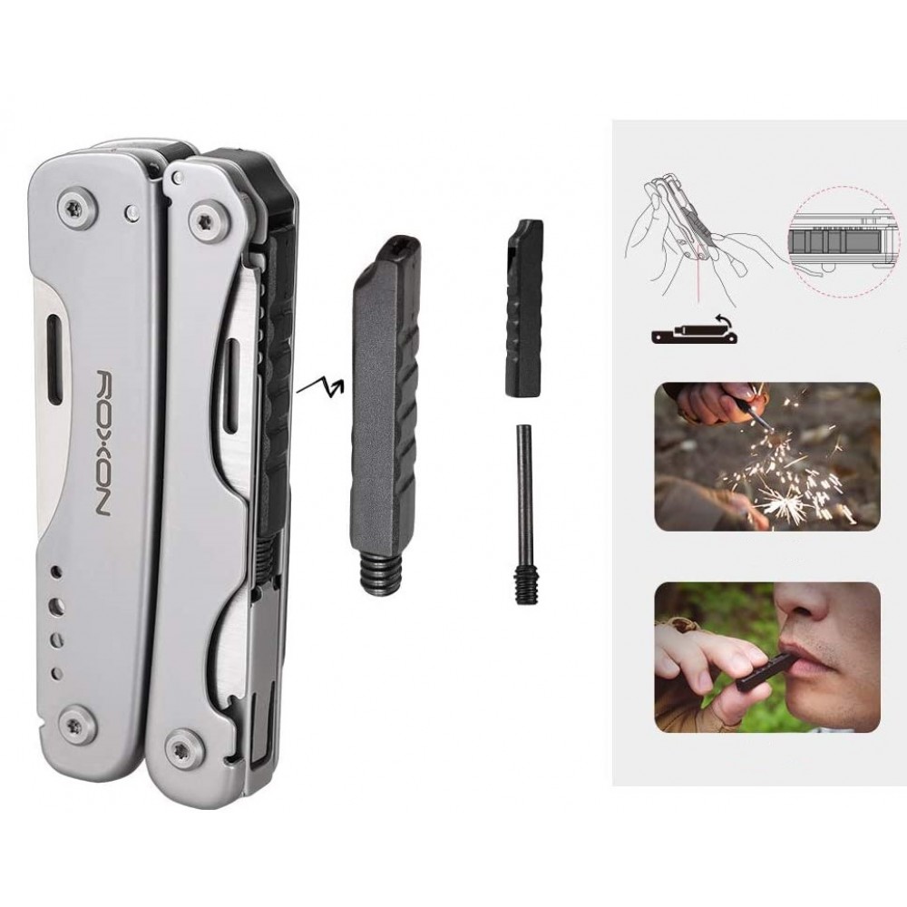 Багатофункціональний інструмент Roxon Flash S803 має компактні розміри, їм зручно користуватися. Тут є всі найнеобхідніші і часто використовувані знаряддя. Всього 16 функцій. Невеликий мульті інструмент Roxon Flash S803 стані в нагоді в різних ситуаціях. Безсумнівно, що він ідеальний для активного проведення часу. Туристам особливо сподобається ця модель. Вона виключає необхідність в транспортуванні і використанні маси інструментів, які, до того ж, займають місце в рюкзаку. Шістнадцяти функцій буде достатня, щоб виконати основні операції.