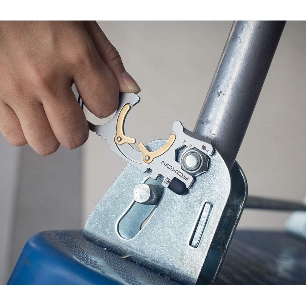 Мульті інструмент надзвичайно дієвий і функціональний, з його допомогою вдається робити багато операцій. Відкривати пляшки, розкривати коробки, щось підкручувати, повертати, а також багато що інше – легко при використанні моделі. Вона зроблена акуратною і надійною, має міцну структуру, розрахована на довгий термін застосування. Рівний контур без задирок. Ергономічна ручка. Конструкція дуги забезпечує комфортний захоплення. Задня частина має кільцеву конструкцію, що добре для стабільного зчеплення пальців і зручного використання.