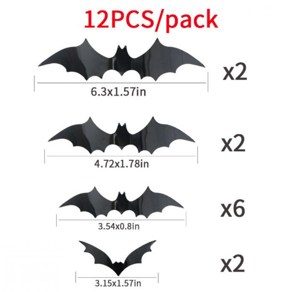 Набір 3D-наклейок «Летючі миші» — 12 шт, 4 розміри, чорний глянець