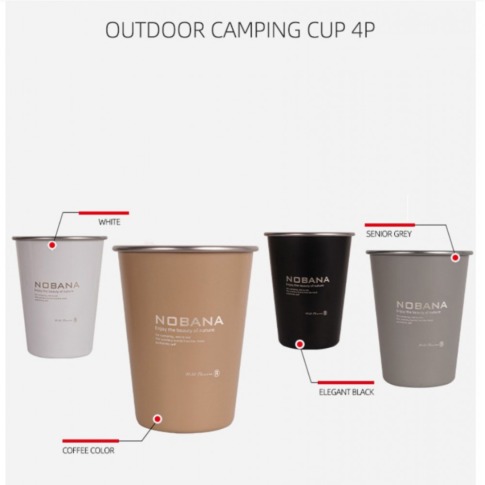Набір кемпінгових стаканів NOBANA — практичний комплект із 4 стаканів для кемпінгу, пікніка, риболовлі, BBQ, поїздки на природу або відпочинку на дачі. Стакани зроблені з нержавіючої сталі 304, підходять для води, кави, чаю, соку, пива та інших напоїв. Вони легко складаються один в один, займають мало місця та йдуть у комплекті з тканинним мішечком для зберігання та перенесення.