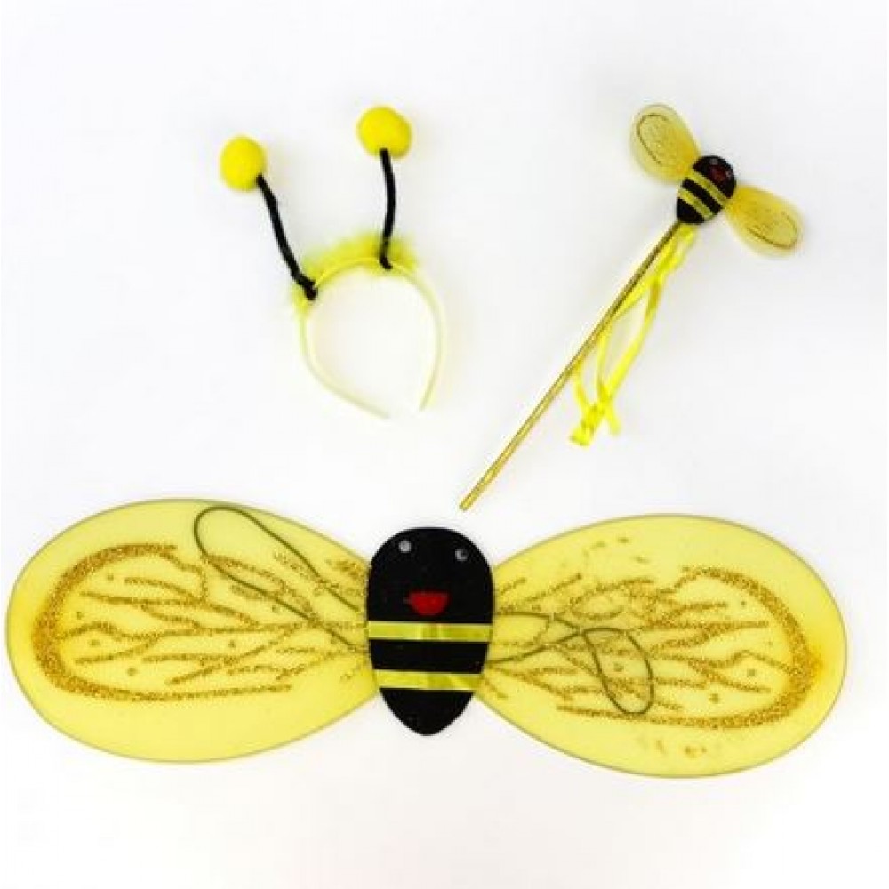 Інтернет магазин Подарок-тут! пропонує Вам купити дитячі накладні карнавальні Набір Бджоли. Карнавальні жовті крила Бджілки з капрону на металевому каркасі. Основа крил – металевий каркас, обтягнутий капроновою тканиною. Надійно та практично крила одягаються на плечі за допомогою гумок. Крила бджілки чудово підійдуть як для дитячого ранку, так і для маскарадної вистави чи концерту, фотосесії чи весілля.