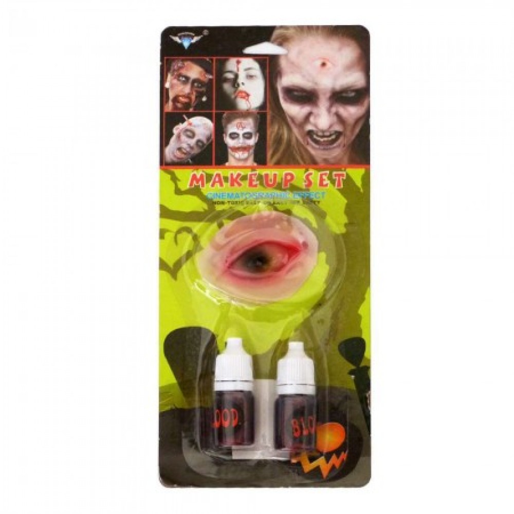 Жоден несамовитий образ монстра не буде повним без відповідного гриму. Тут на допомогу прийде страшний Набір для Хеллоуїна Третє око, накладне око та вражаючий зомбі – макіяж. У комплект набору входить: накладне око, 2 пляшки штучної крові. Можна купити грим для Хеллоуїну універсальний, який підійде до кількох дорослих та дитячих костюмів, або вибрати спеціалізований. Різноманітні штучні шрами для Хеллоуїн дозволяють відтворити порізи, опіки або укуси вампіра, додаючи будь-якій грі реалістичності.