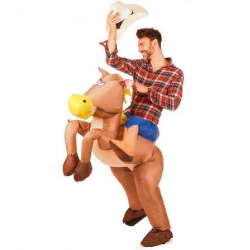 Надувний костюм Вершник на коні FZ1543 міцний, водонепроникний, легкий та зручний в експлуатації. Форму костюма підтримує постійний піддув повітря вбудованим вентилятором на пальчикових батарейках 4шт x AA. Батарейки до комплекту не входять. Пневмокостюм абсолютно не стискує рухів. Одягається на звичайний одяг. Також цю тканину не потрібно гладити і прати, витримує холод і спеку. У набір входить: костюм, компресор, бокс для пальчикових батарейок АА (батарейки в комплект не входять). Серед нашого широкого асортименту товарів, Ви знайдете безліч незвичайних та оригінальних товарів для свята. Купити Надувні костюми та ростові ляльки оптом та по дропшипінгу за найкращою ціною в інтернет-магазині Карнавал Жартів.