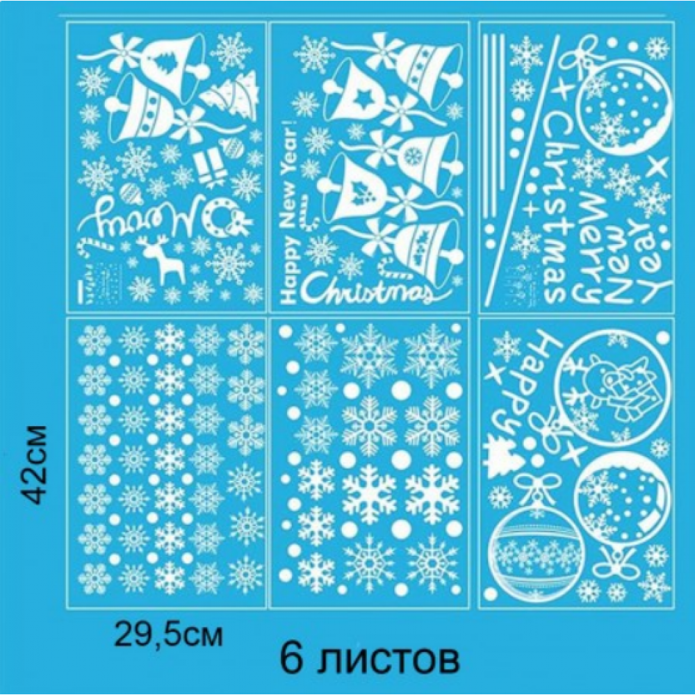 Інтер'єрна наклейка Зимові візерунки Дзвіночки та Кульки (6 листів А3)