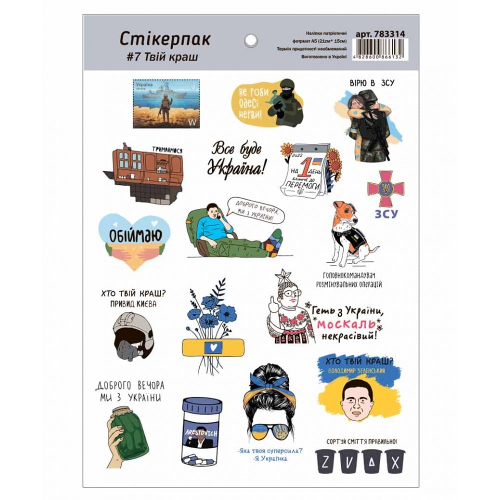 Наліпки, стікерпак №7 ТВІЙ КРАШ А5 15см*21см