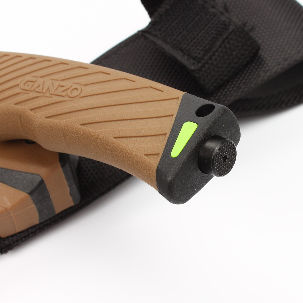 Простий і надійний туристичний ніж Ganzo G803 з фіксованим клинком відмінно підійде для активного відпочинку на природі. Він досить міцний для виконання різних трудомістких завдань і довго залишається гострим. Ці особливості обумовлені застосуванням для виготовлення клинка нержавіючої сталі марки 8Cr13 і його подальшої загартування до ~58 HRC.