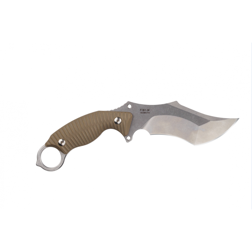 Ніж F181 має повну довжину 22,9 см, а важить він 198 грам. Довжина клинка становить 11,5 сантиметра, довжина рукояті – 11,4 сантиметри. Товщина клинка – чотири з половиною міліметри. Твердість клинка досягає 58-60 одиниць за шкалою Роквелла. Текстуровані накладки з G10 фіксуються сталевими болтами під торкс. Разом з ножем додаються також піхви для зберігання, виготовлені з АБС-пластику. Піхви передбачають різні варіанти кріплення.