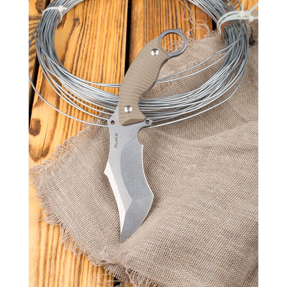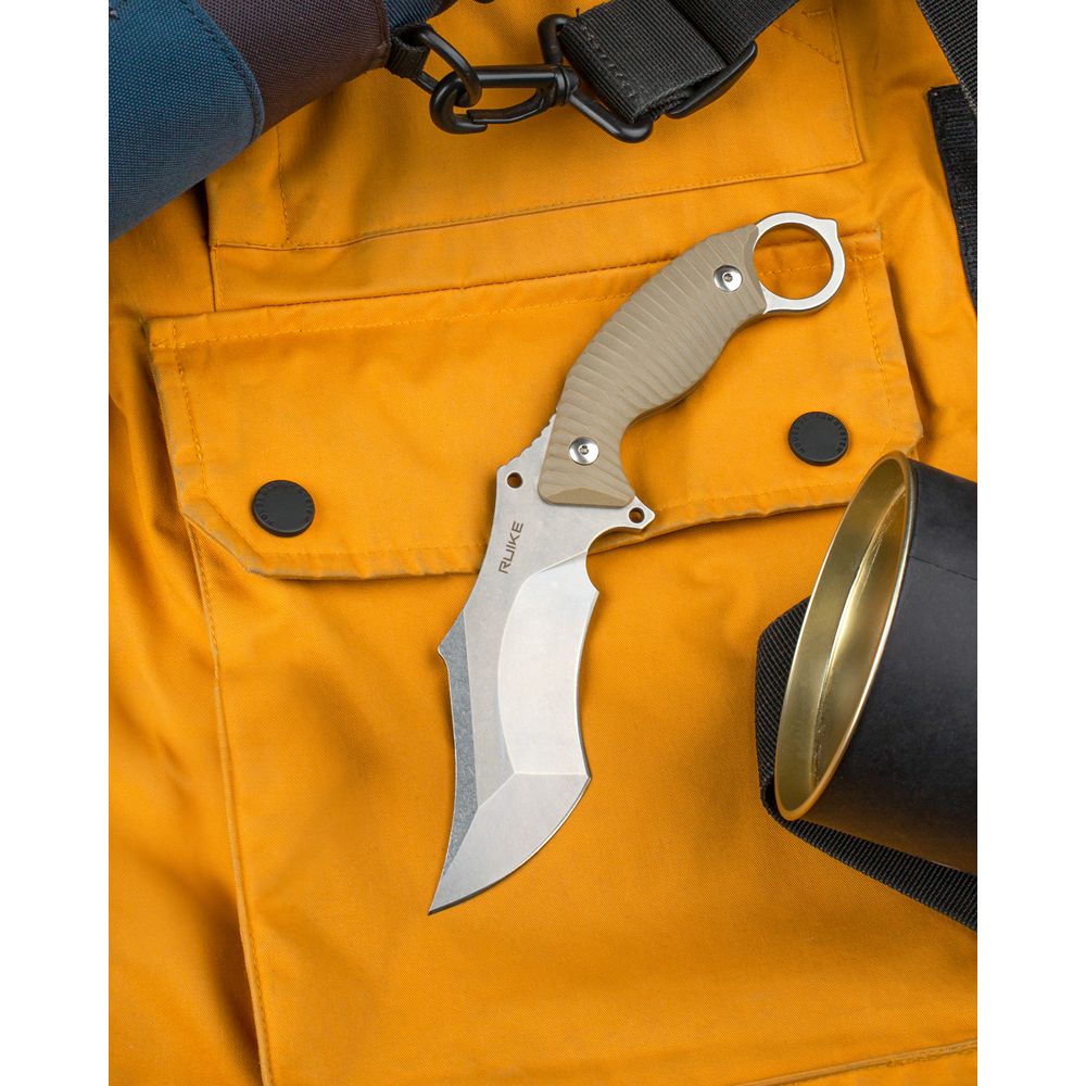 Ніж Ruike F181 являє собою модель з фіксованим клинком. Це ніж різновиди «керамбит», лезо якого має складну форму, призначену для тактики. Примірник представлений в двох варіантах кольору, чорному і пісочному. Модель базується на вже знайомому споживачам ножі P881, складного типу.