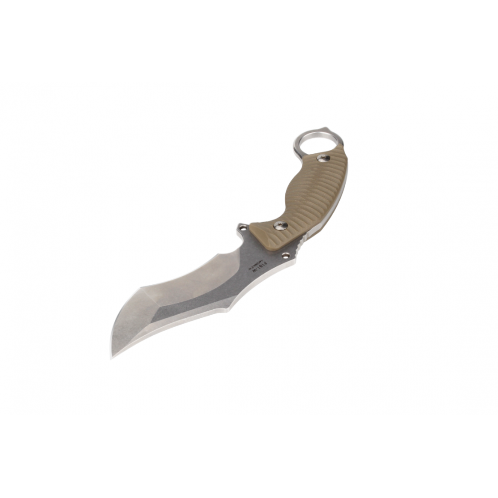 Рукоять виготовлена з склотекстоліти G10, який являє собою суміш склотканини і епоксидних смол. Це досить міцний і стійкий до пошкоджень матеріал, добре переносить вологу, відмінно піддається фарбуванню. До того ж, G10 стійкий до впливів високих температур. Рукоять з таким матеріалом у складі буде мати довгий термін служби і добре протистояти впливу різних факторів.