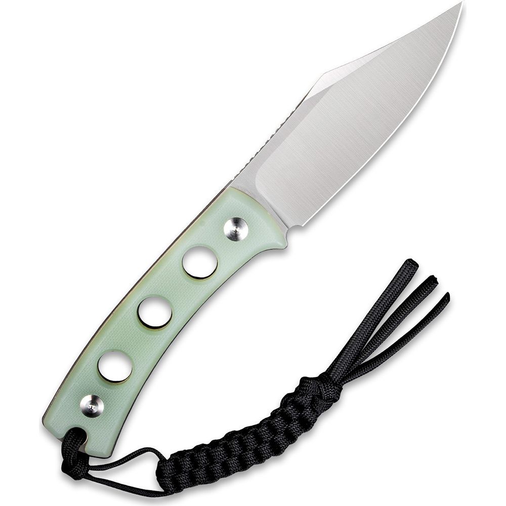 Ручка цього ножа оснащена протиковзною текстурою з композиту G10. Матеріал представлений скловолокном , спресованим під тиском з синтетичною смолою. G10 забезпечує хороше зчеплення та зручно лежить у руці. Він також стійкий до вологи, тепла та більшості хімічних речовин. Це робить його ідеальним матеріалом для ручки ножа! Проста та дуже міцна конструкція гарантує багаторічну експлуатацію. Завдяки отворам в ручці забезпечується ергономічність і легкість самого аксесуару. Додатково є отвір для кріплення захисного або декоративного шнура (входить у комплект).