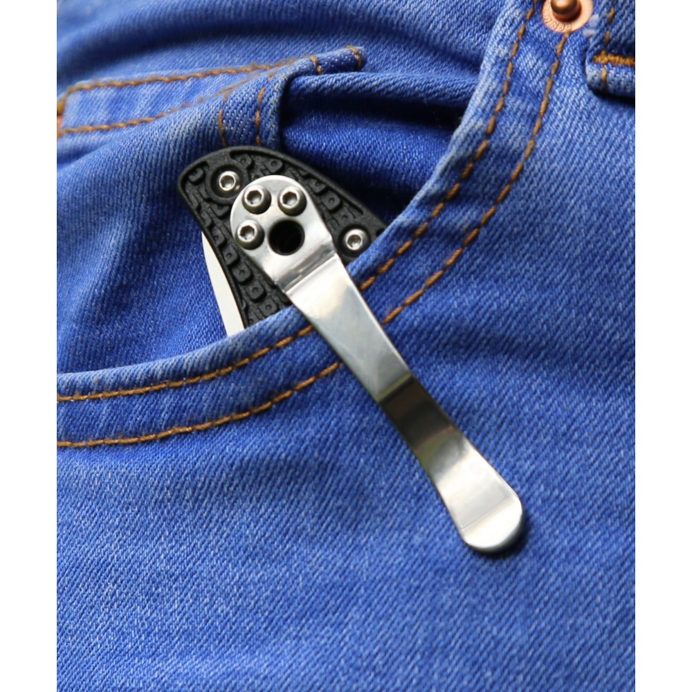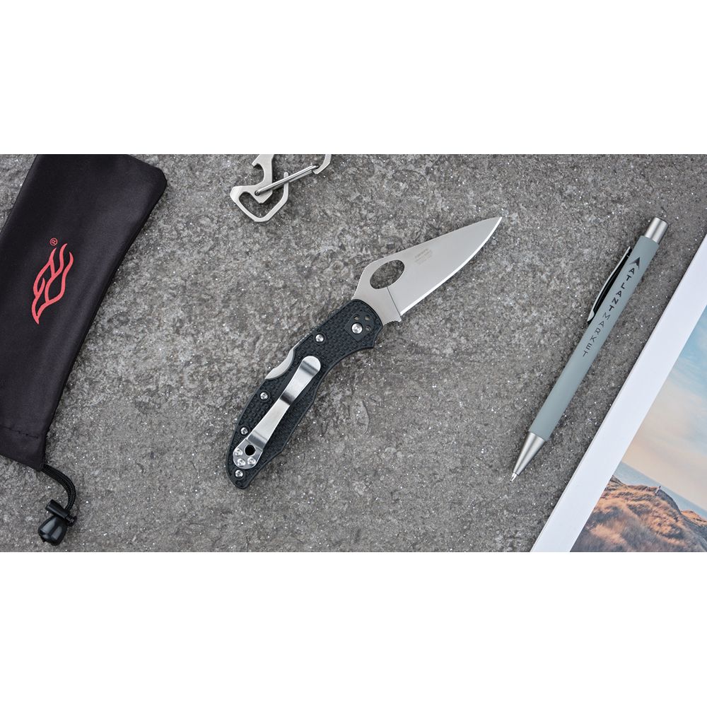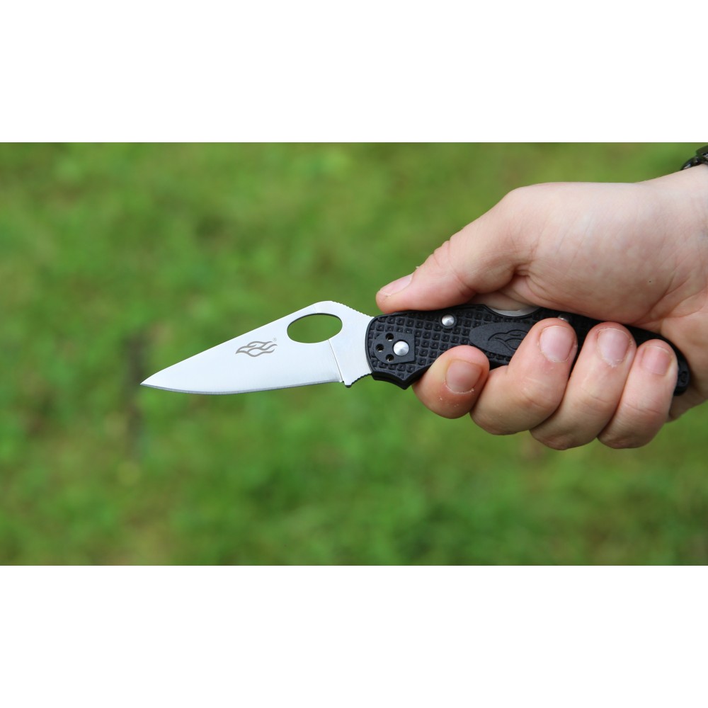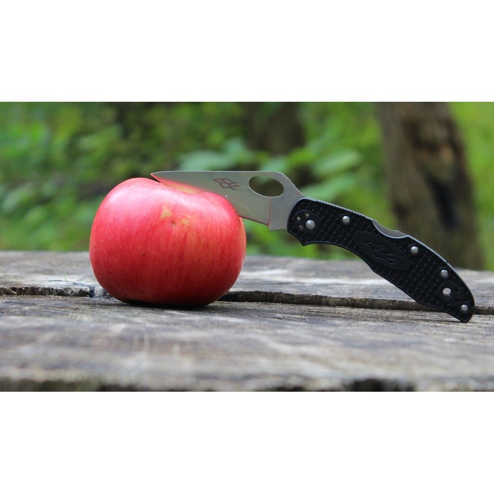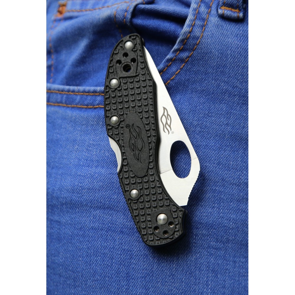 Невеликий складаний ніж здатний допомогти вирішити дуже багато питань, що виникають не тільки в місті, але і під час будь-яких поїздок на природу. Якщо для цих цілей ви хочете підібрати компактну, зручну і оригінальну модель, Firebird F759M підійде під кожен з перерахованих критеріїв. Загальні розміри ножа — 17,5 см, а в складеному вигляді він ще більш компактний, важить 67 грам. Такий ніж точно не здасться важким для того, щоб носити його в кишені. До того ж, він дуже цікаво оформлений і зроблений дуже довговічним. Лезо в даній моделі — нержавіюче. Для нього виробники взяли сталь 440С з показником твердості 58 HRC. Такий метал буде довгий час зберігати відмінний рівень заточування. Враховуючи, що кромка леза Firebird F759M зроблена гладкою, поєднувати її власник ножа зможе і самостійно. Розмір безпосередньо леза становить 75 мм. Помітно розширюється до ручки клинок оброблений на фінішному етапі за методом сатинування, за рахунок чого на його поверхні стають майже непомітними різні відбитки і невеликі подряпини, а значить, довше ніж виглядає зовсім новим. Отвір, який зроблено в лезі служить для відкриття ножа. У відкритому положенні клинок Firebird F759M фіксується спеціальним замком, конструкція якого називається Back Lock. Він довговічний, не спрацьовує без участі користувача, досить простий у догляді. Що стосується рукоятки, то вона може бути оранжевою, чорної, рожевий або блакитний. Матеріалом для яскравих накладок послужив наповнений скловолокном нейлон. Це дуже міцний і стійкий до різного роду впливів матеріал, який прослужить багато років. Щоб ніж не прослизав у долоні, накладки зроблені текстурними. Щоб закріпити ніж у кишені і виключити його випадіння під час перенесення, рекомендується використовувати притискну кліпсу. Її можна встановити в тому положенні, яке здасться найбільш зручним (все можливе 4 варіанти). Особливості:- невеликий кишеньковий ніж;