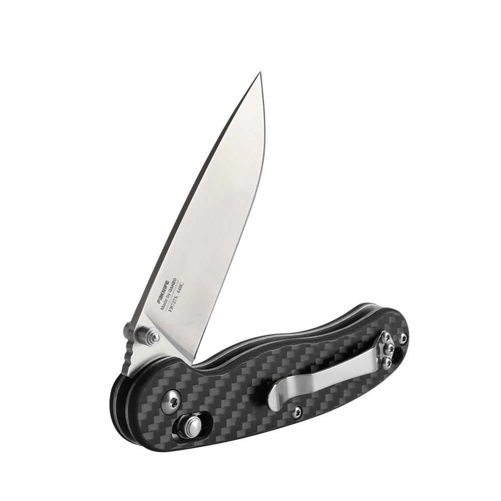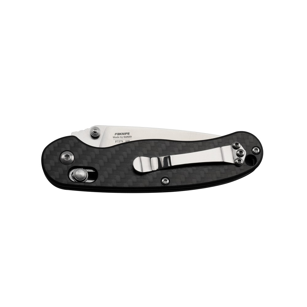 На моделі є металева кліпса. Вона міцна і жорстка, а також корозійностійка. Кліпса допомагає фіксувати ніж на одязі або спорядженні. Виріб F727S-CF нагоді різним категоріям користувачів. Можна брати з собою в похід, на вилазку, на дачу, використовувати вдома, на роботі, на полюванні і риболовлі. Маленький, легкий ніж, акуратний, стильний і міцний, буде завжди під рукою.