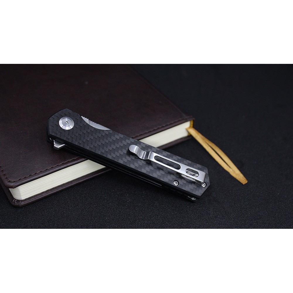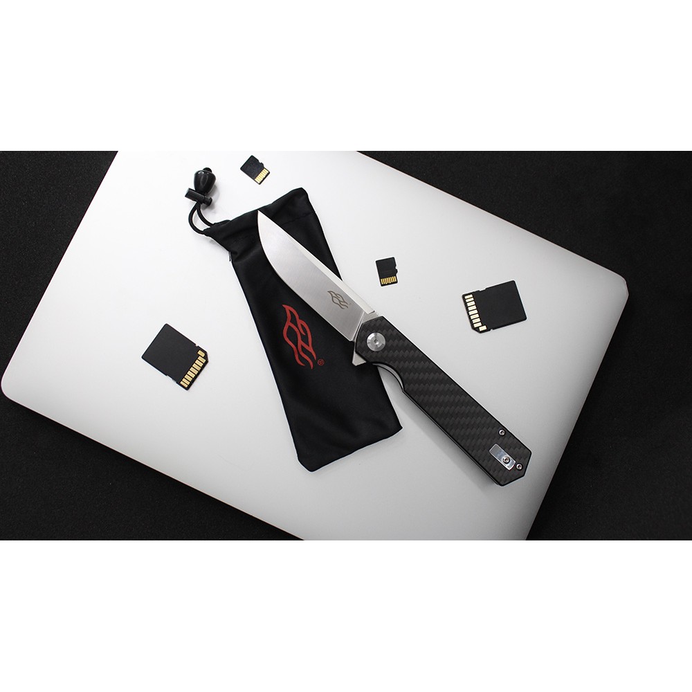 Рукоятка складного ножа Firebird FH11-CF складається лише з пари компонентів. Це 2 сталевих лайнера, що лежать в основі і забезпечують міцність конструкції і накладки з карбону з двох сторін. Вони не тільки роблять дизайн ножа оригінальним, а й за рахунок якісного складання і ретельної підгонки комплектуючих дозволяють з максимальним комфортом утримувати ніж практично будь хватом.