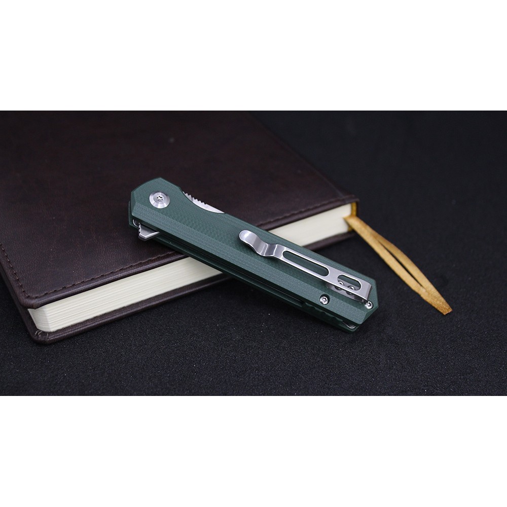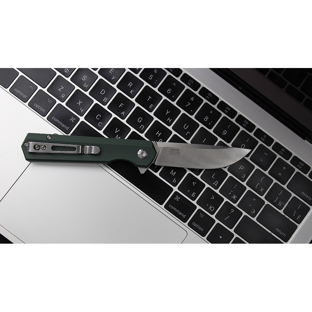 Ніж забезпечений металевою кліпсою, за рахунок чого його застосування стає ще більш комфортним. Ви можете зафіксувати ніж на кишені, на ремені, причепити його до сумці або рюкзаку. З досвіду застосування колишніх виробів від Ganzo можна стверджувати, що ножі володіють прекрасною механікою. Вони безпечні в експлуатації, легко відкриваються і закриваються. Замком для даної моделі послужила конструкція типу Flipper. Складні ножі знайшли чималу популярність у користувачів. Компактні, зручні, легкі.