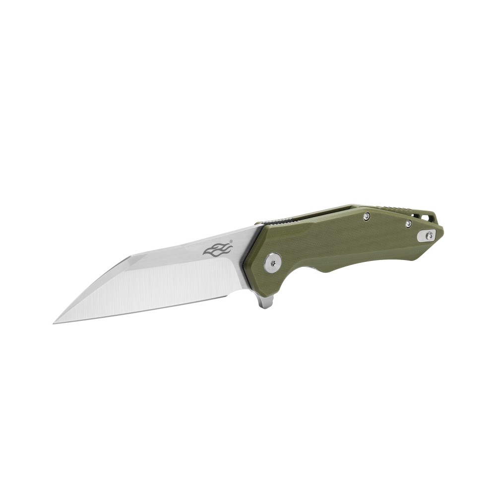 Довжина клинка цілком достатня, щоб з його допомогою було зручно виконувати всі основними різновиди робіт. Вона становить 86 мм. При цьому більшу міцність лезу гарантує товщина по обуху, рівна 3 мм. Форма клинка незвичайна для бренду Firebird - це Wharncliffe. Для такої форми характерна абсолютно пряма ріжуча кромка, наявність фальшлезвия на обуху, а також гостро заточений кінчик леза. Також необхідно сказати, що поверхня ножа відшліфована методом сатинування, за рахунок чого поверхня стали нагадує атлас, на якому видно безліч ледве помітних рисок. Такі ножі менше блікують, а невеликі подряпини на їх поверхні залишаються непомітними.