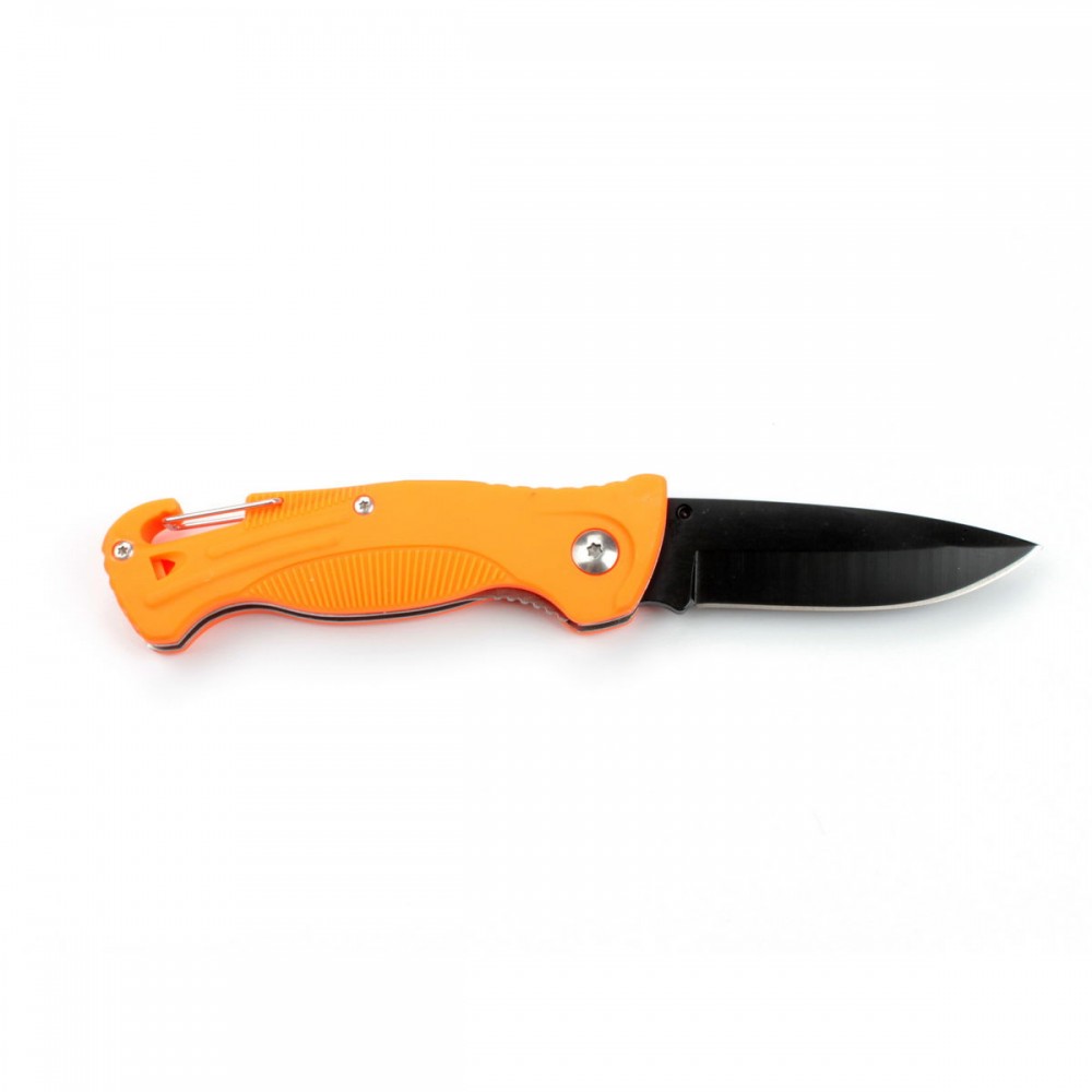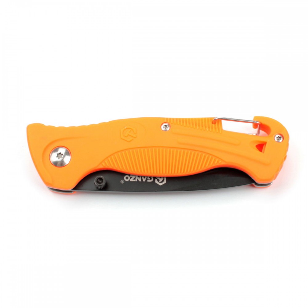 Рукоять ножа G611 orange має зручну ергономічну форму і виконана з ударостійкого пластику помаранчевого кольору. Відмінною рисою моделі G611 orange є наявність вбудованого в ручку свистка, який дозволяє подати попереджувальний сигнал у разі виникнення непередбаченої ситуації або небезпеки. Також на рукояті розташований карабін, який дозволяє закріпити ніж G611 orange на поясі або туристичному спорядженні. Замок Liner Lock надійно фіксує лезо (як у відкритому, так і в закритому положенні). Дана модель стане вашим незамінним помічником під час відпочинку на природі та в походах.