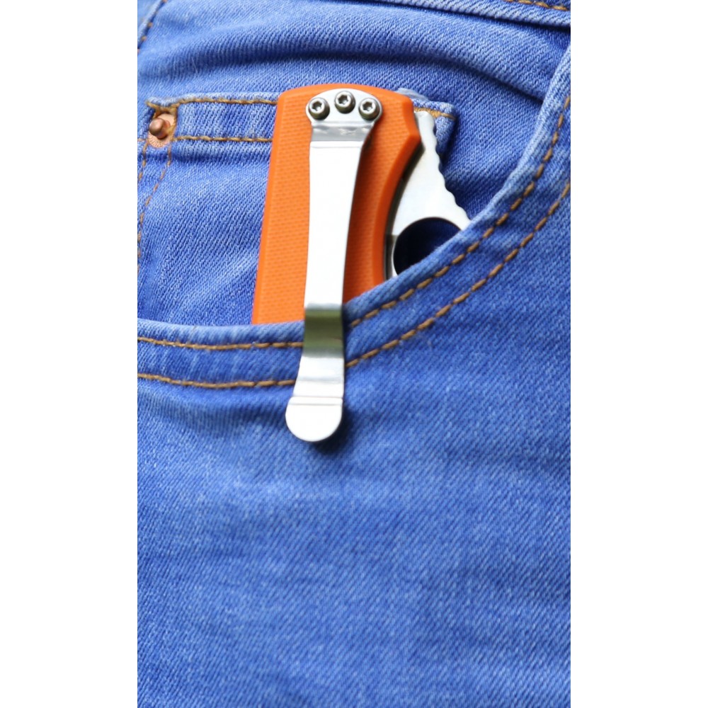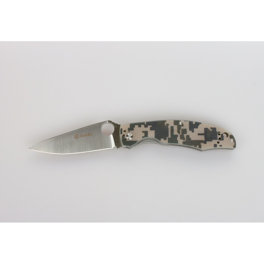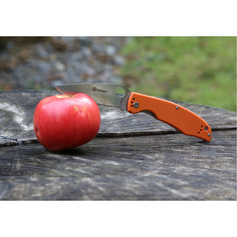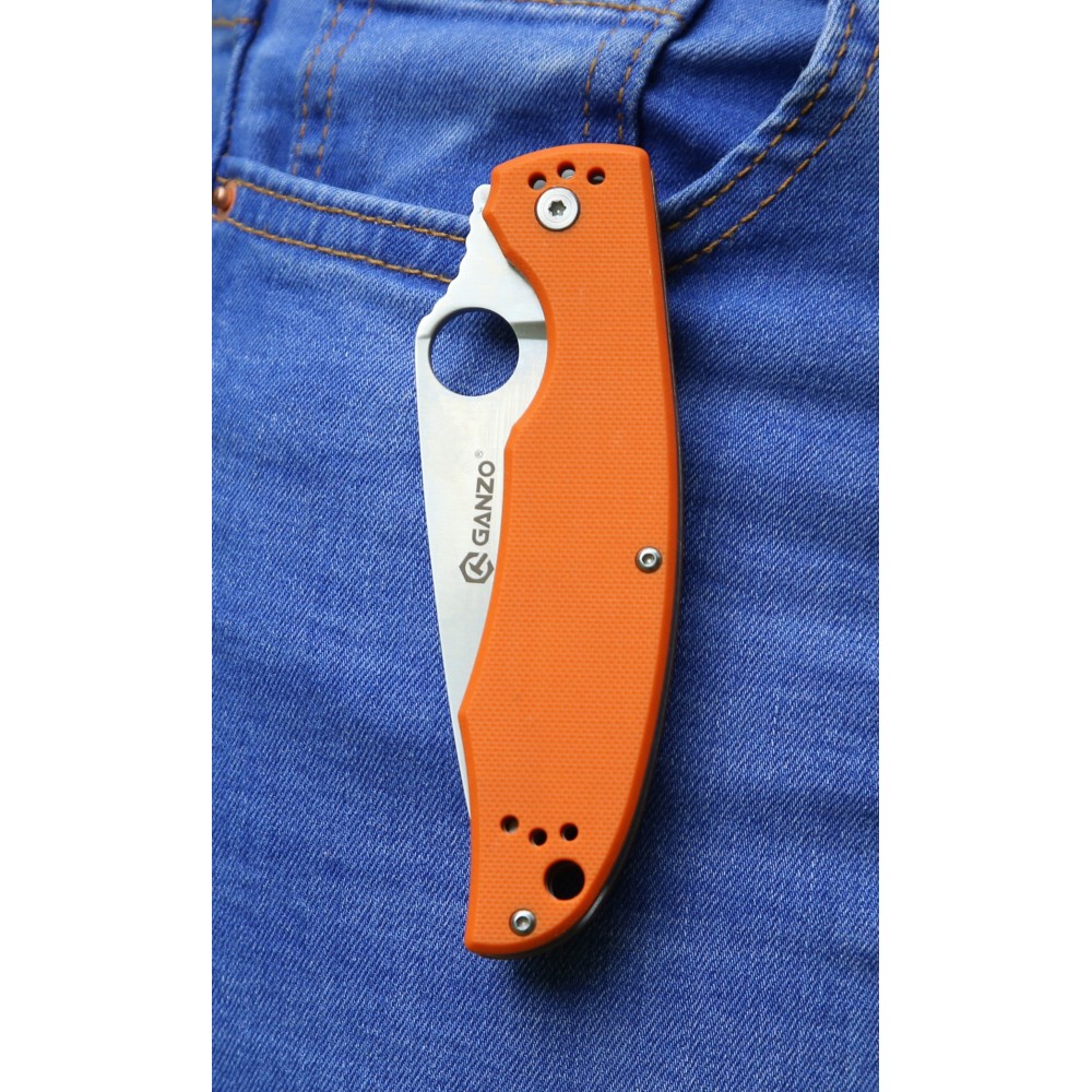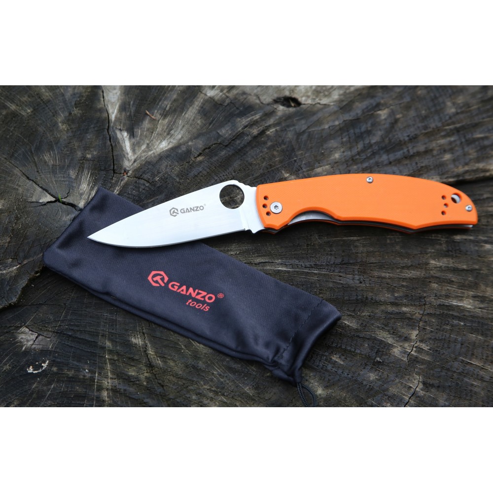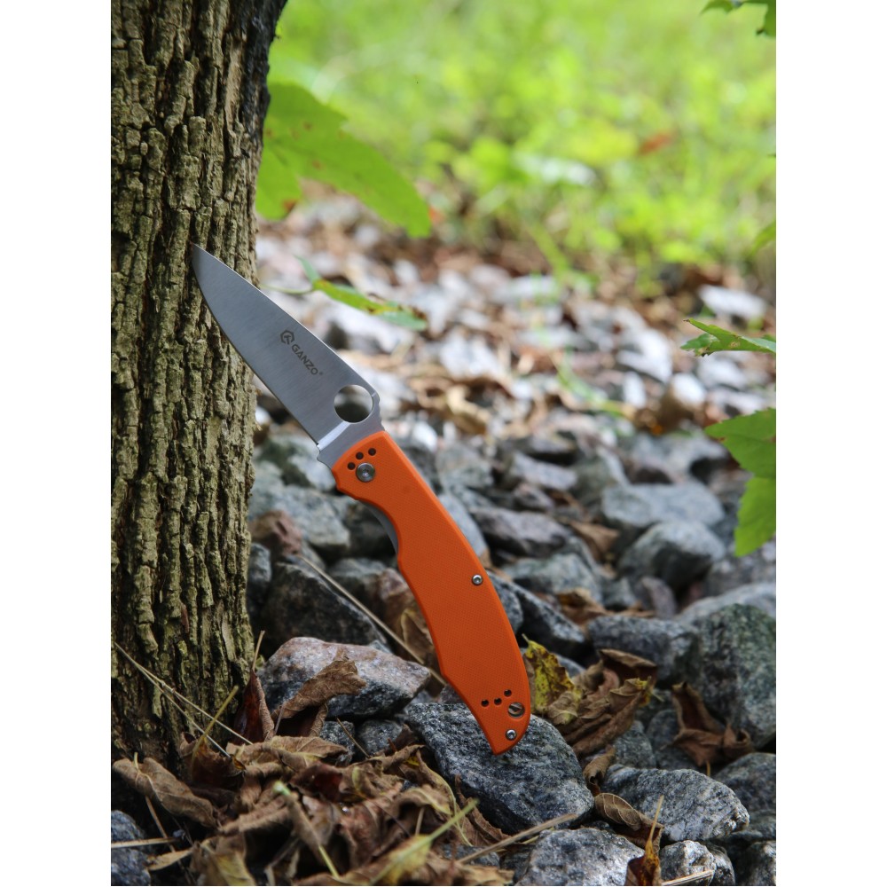 В руках Ganzo G732 лежить дуже комфортно, завдяки грамотному вибору матеріалу для рукоятки та її форми. Накладки виготовлені з композиту на основі скловолокна і епоксидної смоли. Такий матеріал називається G10 і широко використовується для виробництва ручок для ножів. Він дуже пластичний і міцний, завдяки чому ручки виходять ергономічними і довговічними. Що стосується кольору, то покупці за власним розсудом можуть вибирати між чорним, зеленим, оранжевим і камуфляжним варіантами.
