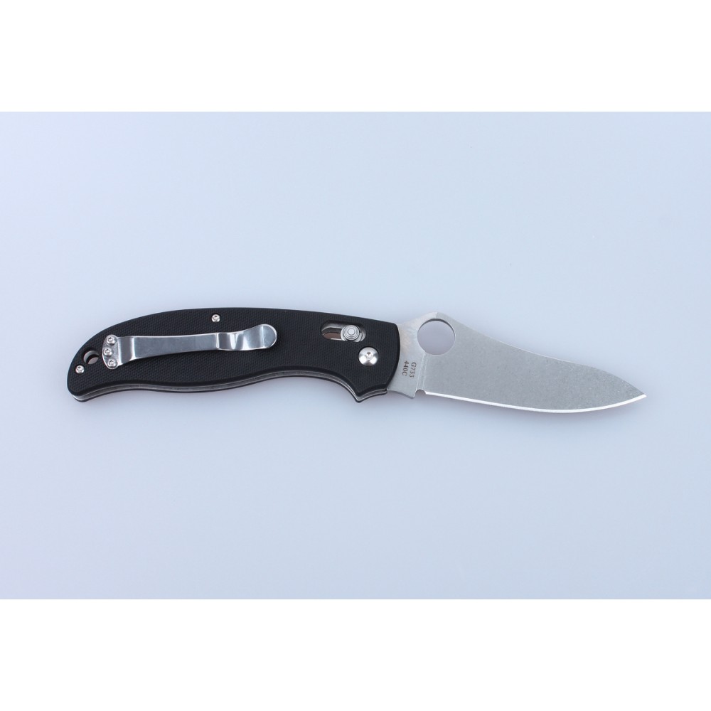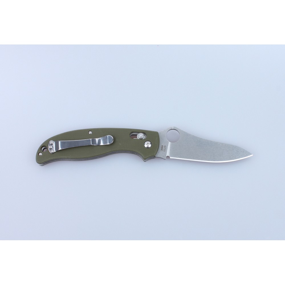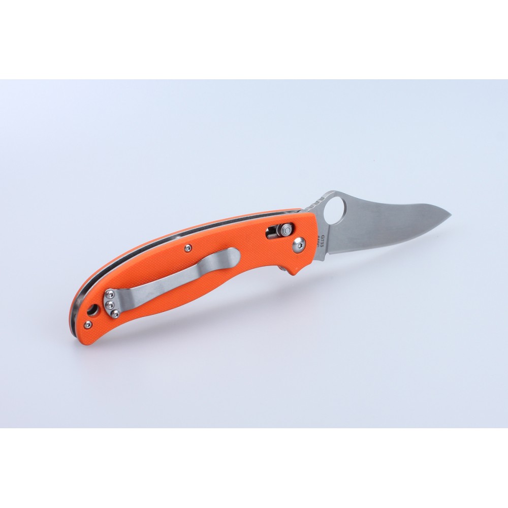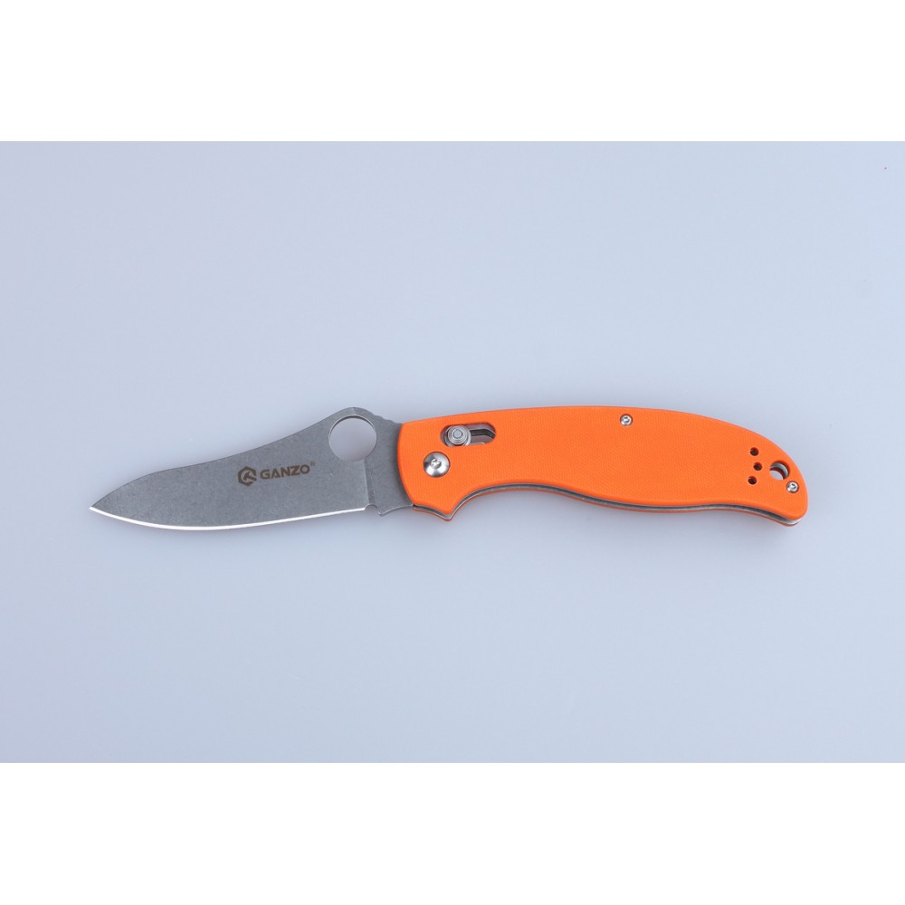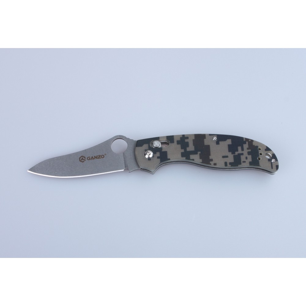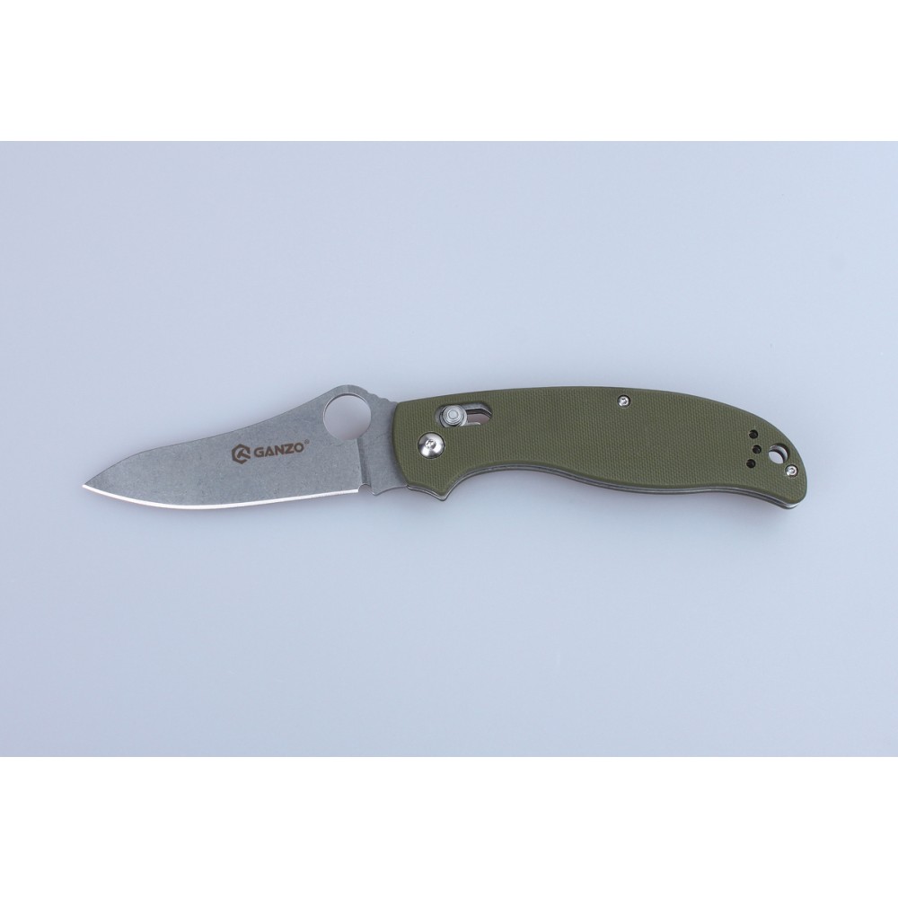 Ganzo G733 — складаний ніж, націлений на використання в туризмі. Він виконаний з нержавіючої сталі і тому йому не страшний контакт з водою. Хоча елементарний догляд у вигляді періодичного протирання клинка, ножу все ж потрібно. Лезо займає 9,1 см від загальної довжини ножа, складовою 21 див. Обух даної моделі дорівнює по ширині 3,3 мм. Геометрія клинка відповідає формі drop point, хоча вона і представлена в зміненому вигляді. На значно ширшій частині клинка з боку рукоятки зроблено отвір. Коли клинок закритий, воно використовується замість традиційного шпенька. Сталь 440С, з якої зроблений ніж, загартована до 58HRC. Заточити її не складно, але заточення буде триматися довго. До речі, лезо ножа — гладке, що робить його універсальним інструментом для вирішення будь-яких похідних завдань, які тільки можна доручити ножу.