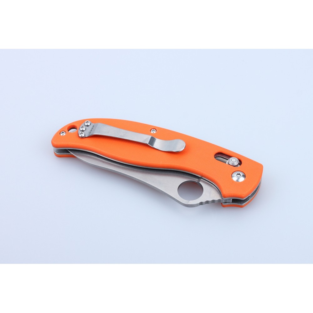 І третя з найбільш суттєвих деталей ножа — його руків'я. У випадку з Ganzo G733, вона зроблена з пластику, до складу якого входить епоксидка і скловолокно. Отриманий полімер — дуже міцний і відрізняється тривалим періодом служби. Його легко пофарбувати у будь який колір. А для Ganzo G733 виробники зупинилися на чотирьох варіантах, які найбільш популярні: чорний, яскраво-оранжевий, зелений камуфляжний. Кожна рукоятка має невелике по діаметру отвір для протягування темляка і сталеву кліпсу для підвішування ножа до поясного ременя. Крім іншого, G10 — легкий матеріал. А тому ніж Ganzo G733 важить лише 125 р.
