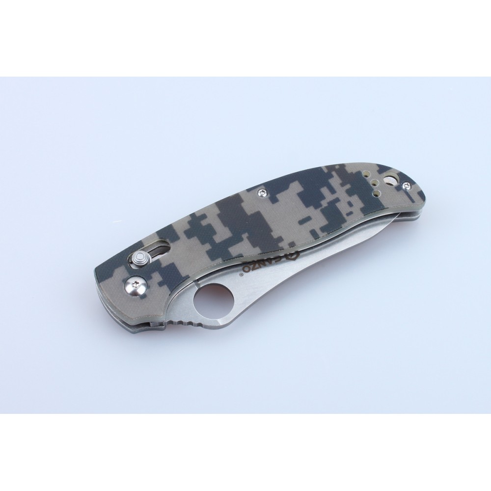 До речі, в моделі Ganzo G733 використаний замок, який входить до числа найпопулярніших. Це Axis, заснований на дії невеликого металевого штифта, який, розташовуючись перпендикулярно клинку, утримує його в потрібній позиції. Відкрити Axis можна однією рукою, що буває важливо в похідних умовах.