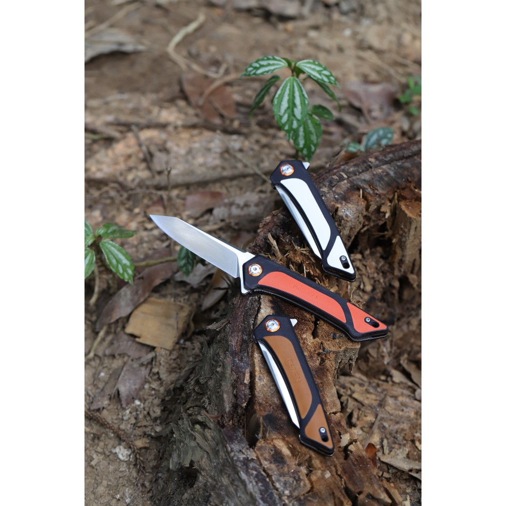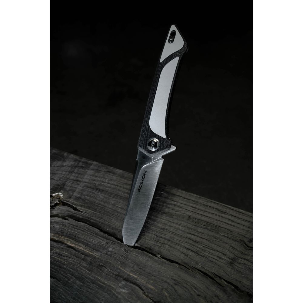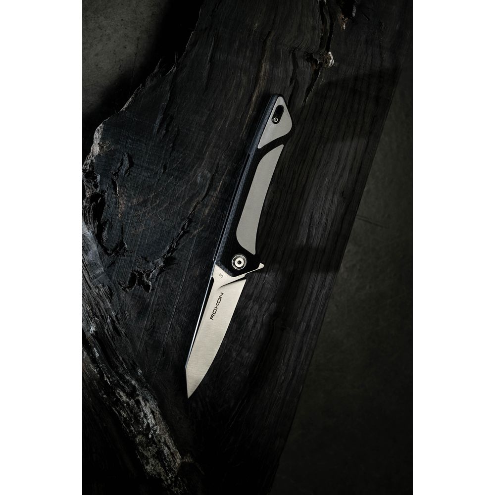 Складаний ніж моделі Roxon K2 представлений у різних варіантах кольору: білий, коричневий, оранжевий. Цей інструмент має зручну конструкцію і є досить потужним ножем для туристичного застосування. Клинок різновиду drop-point підходить для виконання колючих, так і ріжучих рухів. Він є універсальним і часто його можна зустріти серед ножової продукції. Ідеально підходить для різання, рубання, очищення, виколупування та інших дій.