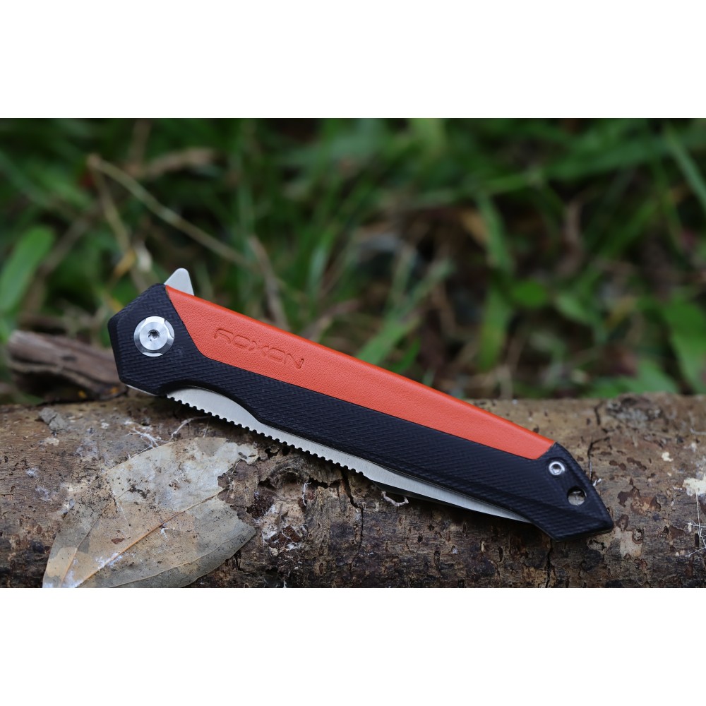 Складаний ніж Roxon K3 є зручним туристичним інструментом, розрахованим на інтенсивне застосування. Різні варіанти кольору моделі-білий, коричневий, помаранчевий. Особливість ножа-в наявності характерних насічок на обуху. Зручний в утриманні, простий у використанні, відкривати і закривати можна однією рукою. Форма клинка-drop-point, що вважається універсальним різновидом. Таким лезом легко виконувати як колючі, так і ріжучі, руху. Клинок оптимальний для нарізування, виколупування, очищення, рубки і різних інших операцій.