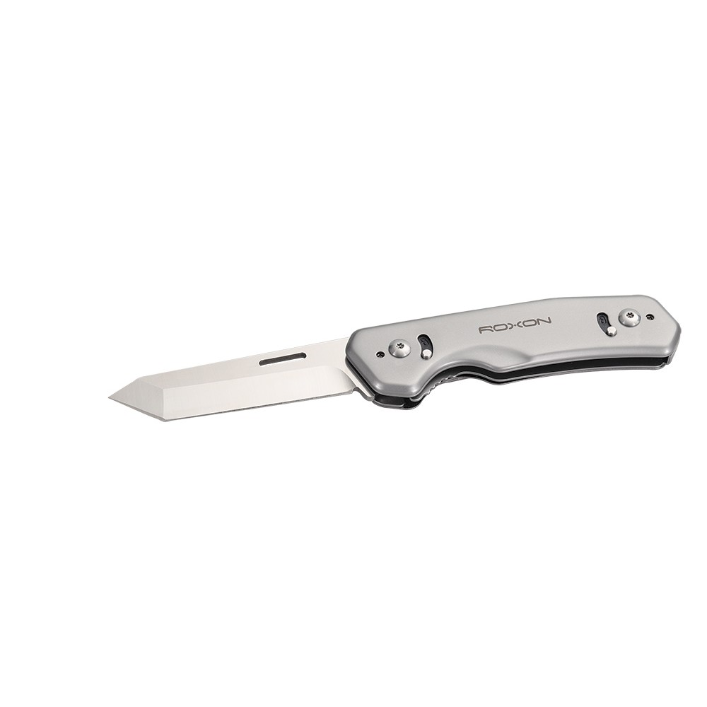 Модель Roxon Phantasy S502 являє собою складаний ніж для застосування в туризмі і в активному відпочинку. Ніж зручно і компактно складається. Прекрасний зовнішній вигляд, гладке поліроване лезо. Є металева кліпса для закріплення ножа і перенесення, можна зафіксувати на кишені, на сумці або на поясі. Потрібний інструмент завжди у вас під рукою. Форма леза ножа – Drop-point, воно може взаємозамінюватися з лезом моделі S802. Є також змінні леза до ножа, щоб можна було виконувати різні операції. Їх треба купувати окремо.
