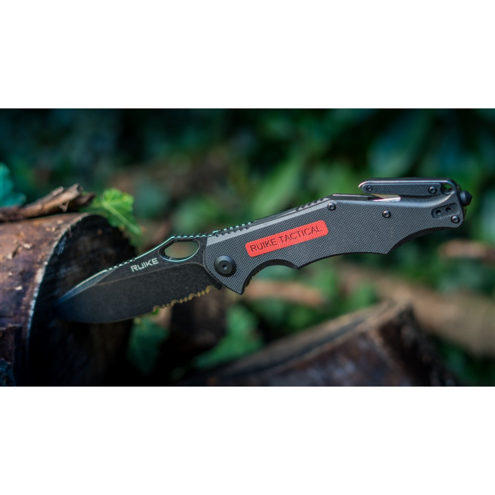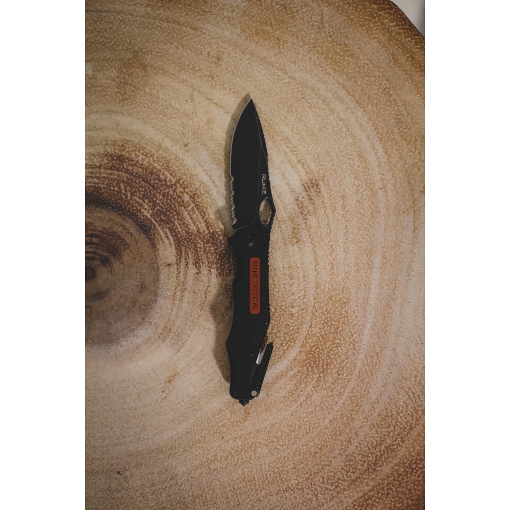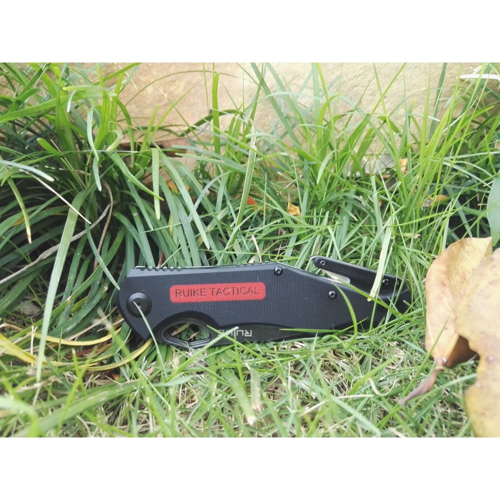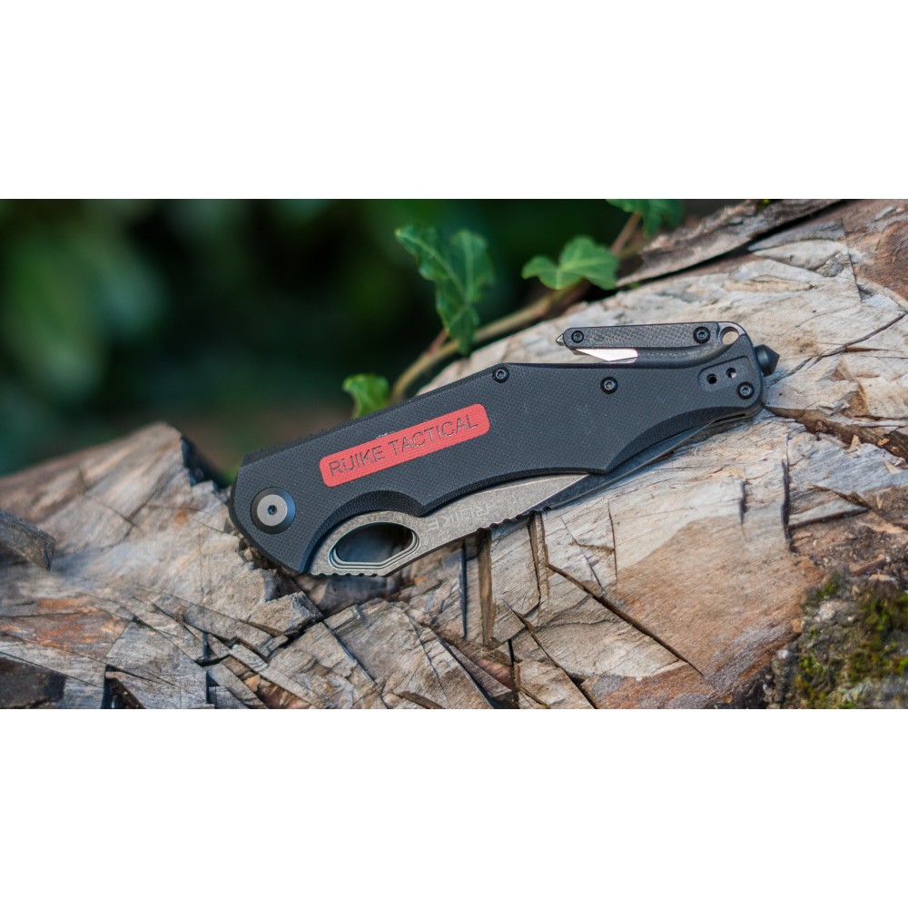 Крім гострого клинка Ruike M195 має у своєму розпорядженні кілька допоміжних елементів: стропоріз і склобій. Вага ножа складає 205 грамів.